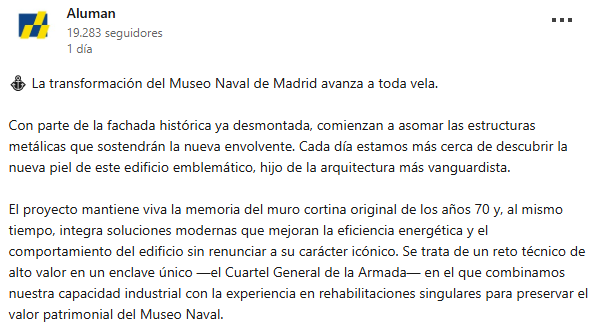 Que bien, de esto ya nos informó @Carlos10 en su momento, pero ¿cómo va a ser la fachada definitiva? ¿Habrá algún cambio sustancial? No tengo Instagram por lo que no puedo ver los vídeos de los dos enlaces que compartes.
