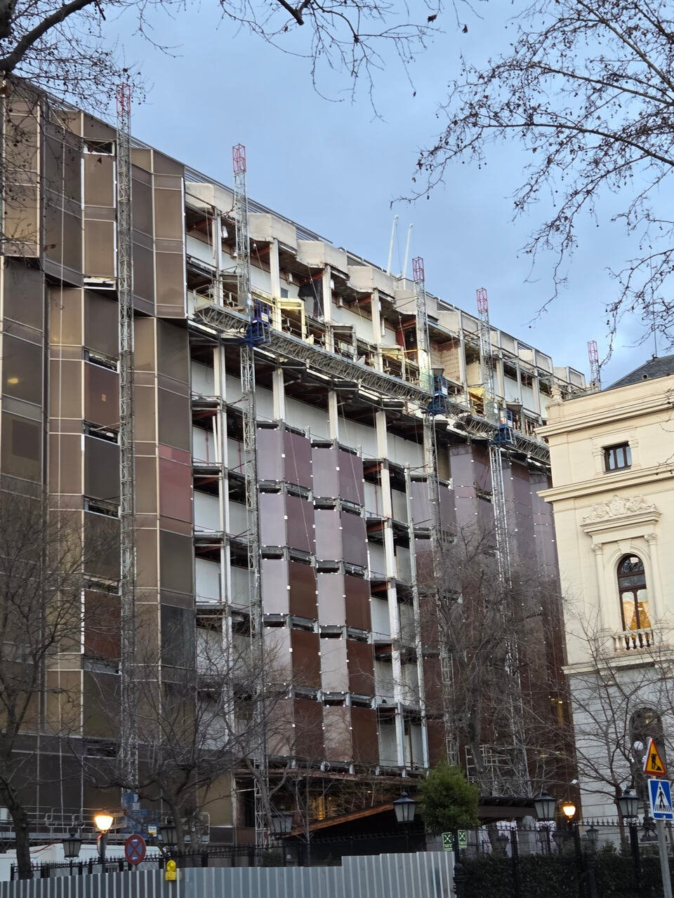 Querría compartir las imágenes que Madrid Proyecta ha colgado sobre el avance de la reforma del Museo Naval, y dar mi opinión al respecto. Llego a la conclusión que esta gente y servidor hablamos diferentes idiomas… Si ellos entienden que un espacio integrado dentro del ámbito del Paisaje de La Luz, Patrimonio del UNESCO, y un museo dedicado a la marina española debe tener una fachada de cristal granate…Apaga y vámonos. Se han limitado a retirar los vidrios anticuados que molestaban visualmente al equipo administrativo militar, tal como me aseguraran y nada más. ¿la estética? ¿el paisaje? Se lo han pasado por el forro.