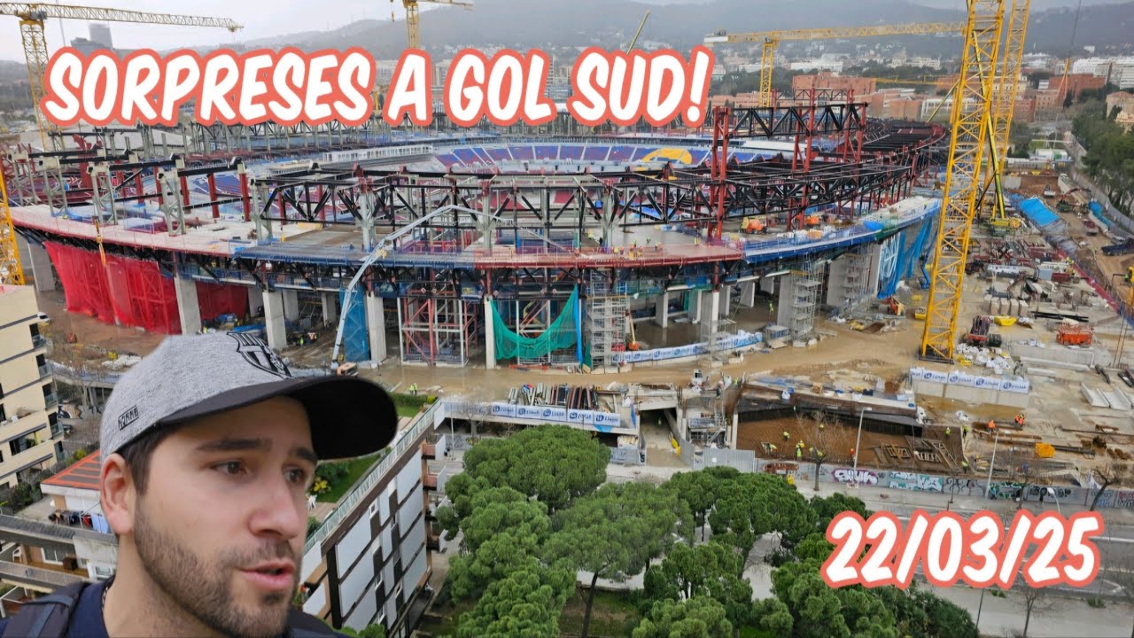 La semana pasada se instalaron farolas, cristaleras de las nuevas zonas comerciales de Gol Sur (Travesera de les corts), colocación asientos banquillos, moqueta alredor del terreno de juego y grandes avances en interiores.
