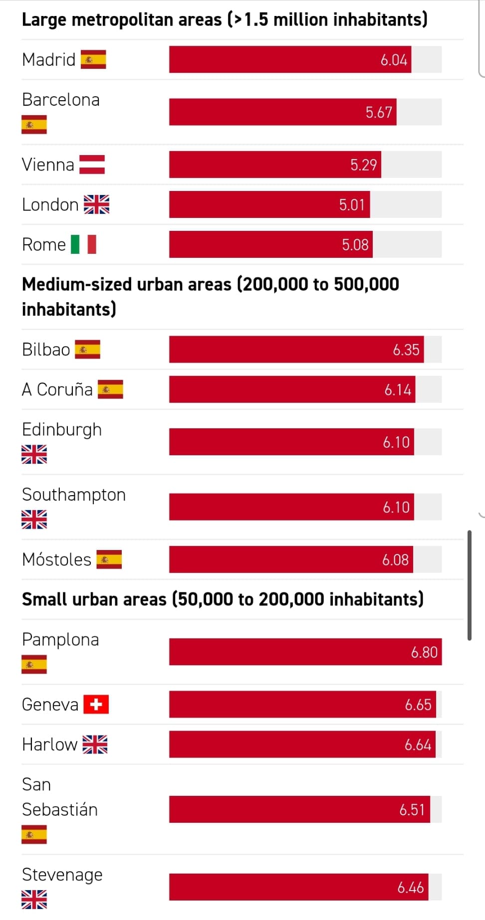 Ranking de ciudades con urbanismo más saludable, de una muestra de 900 y pico ciudades España encabeza las 3 listas