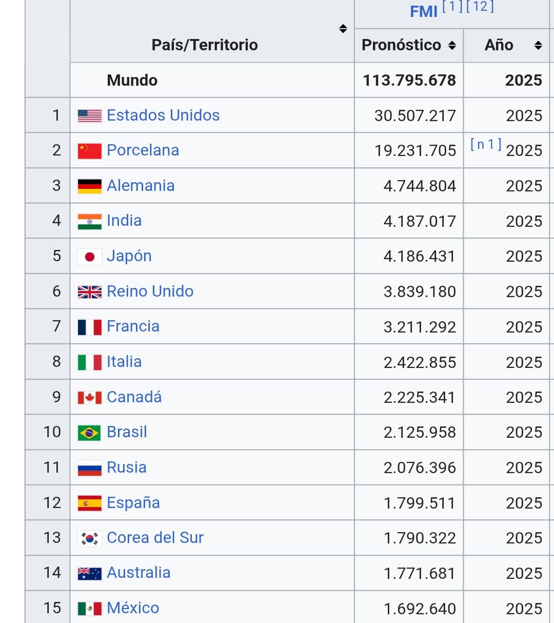 Creo haber leído que el FMI mantenía esta duodécima posición durante unos años.