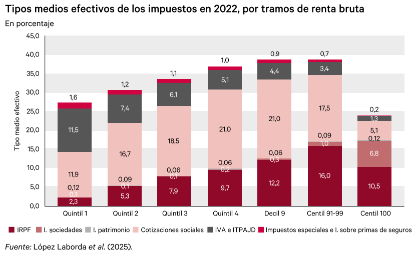 Y por último mi opinión para el que le interese, creo que donde deberíamos de poner el foco es en preguntarnos porque los hogares más pobres soportan un tipo medio impositivo del 27% cuando la redistribución de la renta debería de concentrarse en ellos.