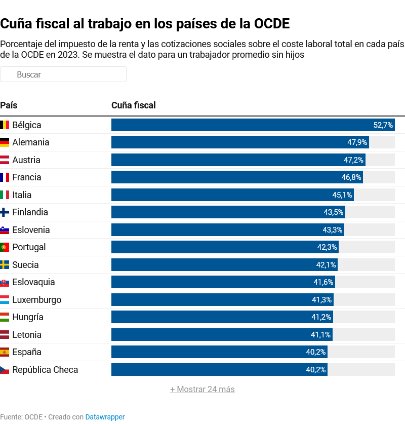 Presión fiscal sobre los salarios por encima de la OCDE.