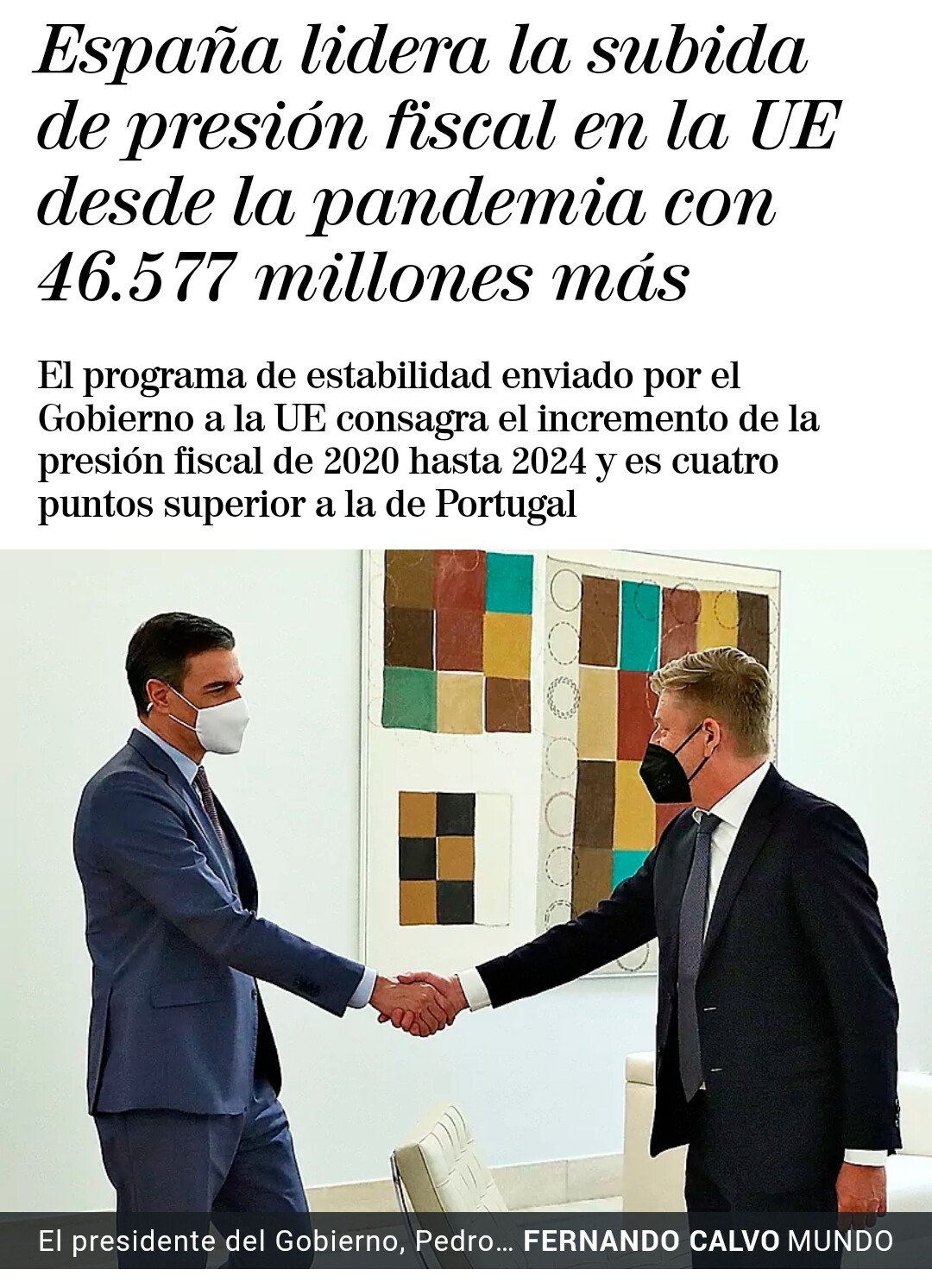 La presión fiscal en España estaba y está por debajo de la media de la Unión Europea y de los países más avanzados. No ha habido cambios significativos en los últimos tres años en los tipos impositivos. La caída del PIB, por el hundimiento del turismo y la automoción hace que haya habido una variación ( esperemos que temporal) de la medida al variar el denominador y mantenerse el numerador. La reforma fiscal de España para igualarnos a Europa, manteniendo el sistema de protección social, y eliminando déficits insostenibles sigue pendiente pese a lo que pudiera parecer leyendo algunos titulares.