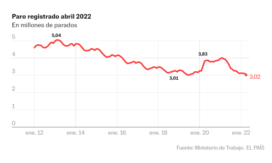 El paro baja en 86.000 personas hasta situarse escasamente por encima de los tres millones de desempleados, la cifra más baja para este mes desde 2008