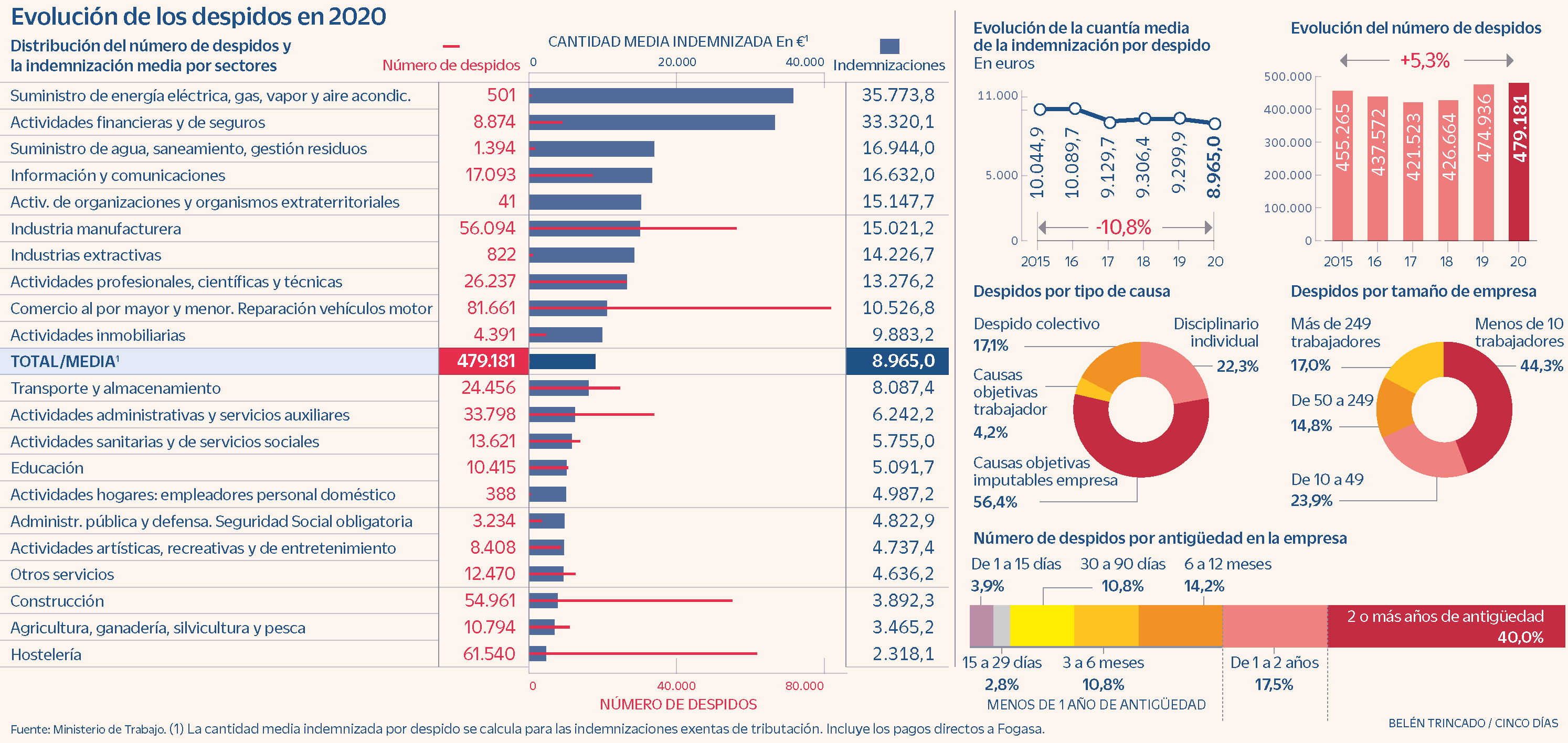 ¿Cuánto se paga de indemnización por despido? Las de energía y banca multiplican por 15 las de hostelería