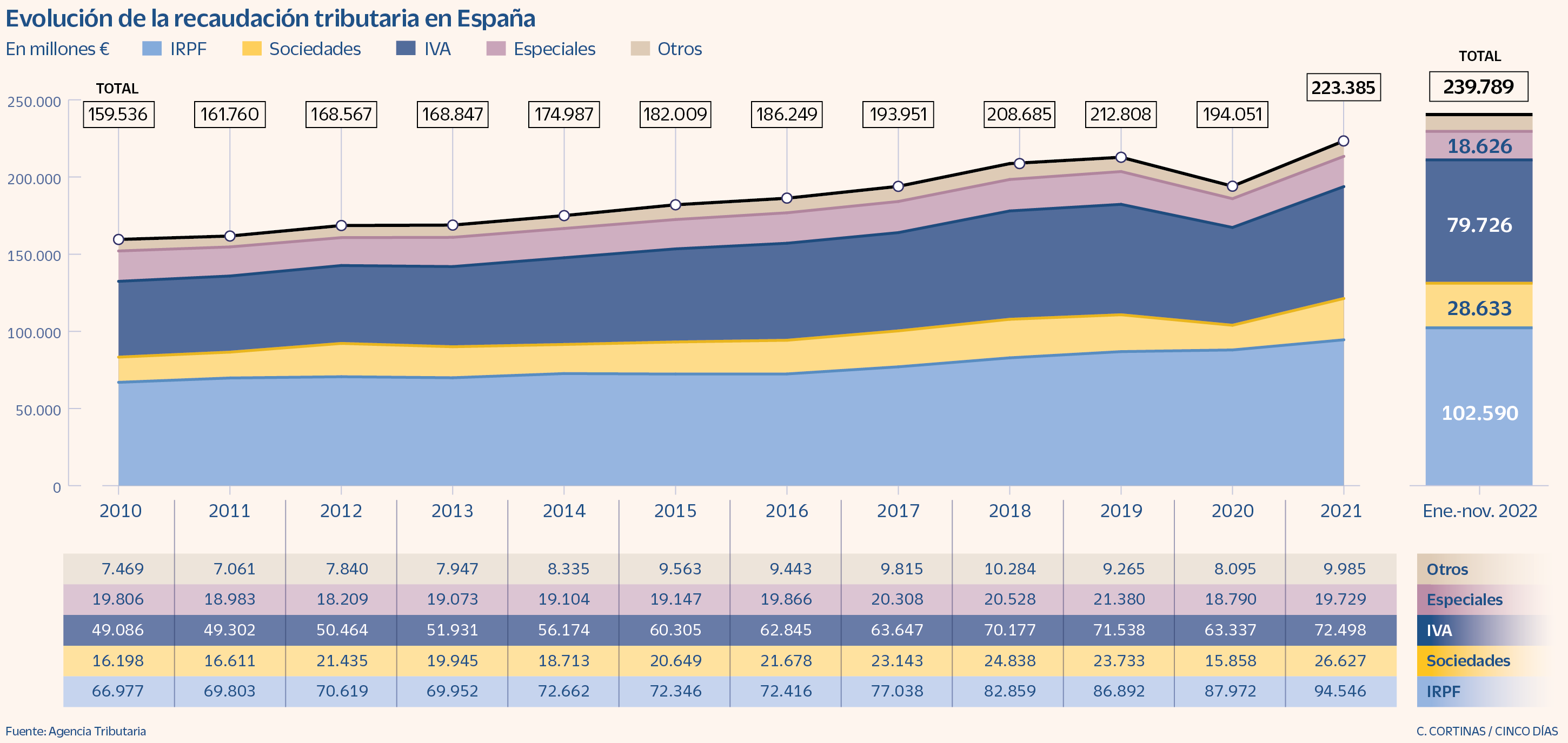 - El acumulado del año supera en 33.000 millones el dato del mismo periodo de 2021