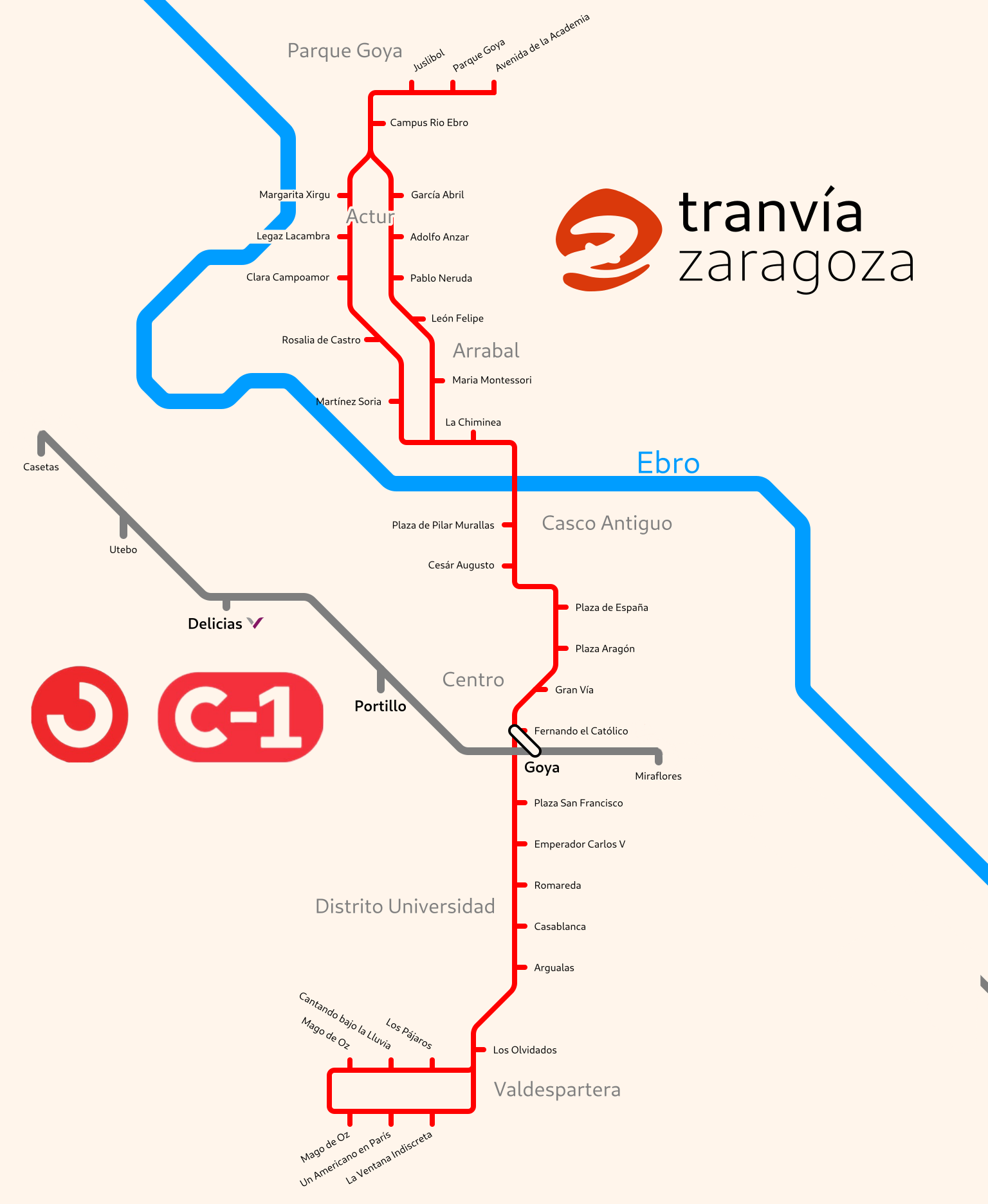 No sé si la extensión de Zaragoza es la suficiente como para justificar un metro… Yo vería más razonable expandir la red de tranvía actual, y si acaso estudiar el aumentar las frecuencias en el tramo subterráneo de Cercanías (Delicias-Miraflores) que ya es en la práctica una línea de metro pero con muy baja frecuencia. Juntas forman la espina dorsal del transporte zaragozano: