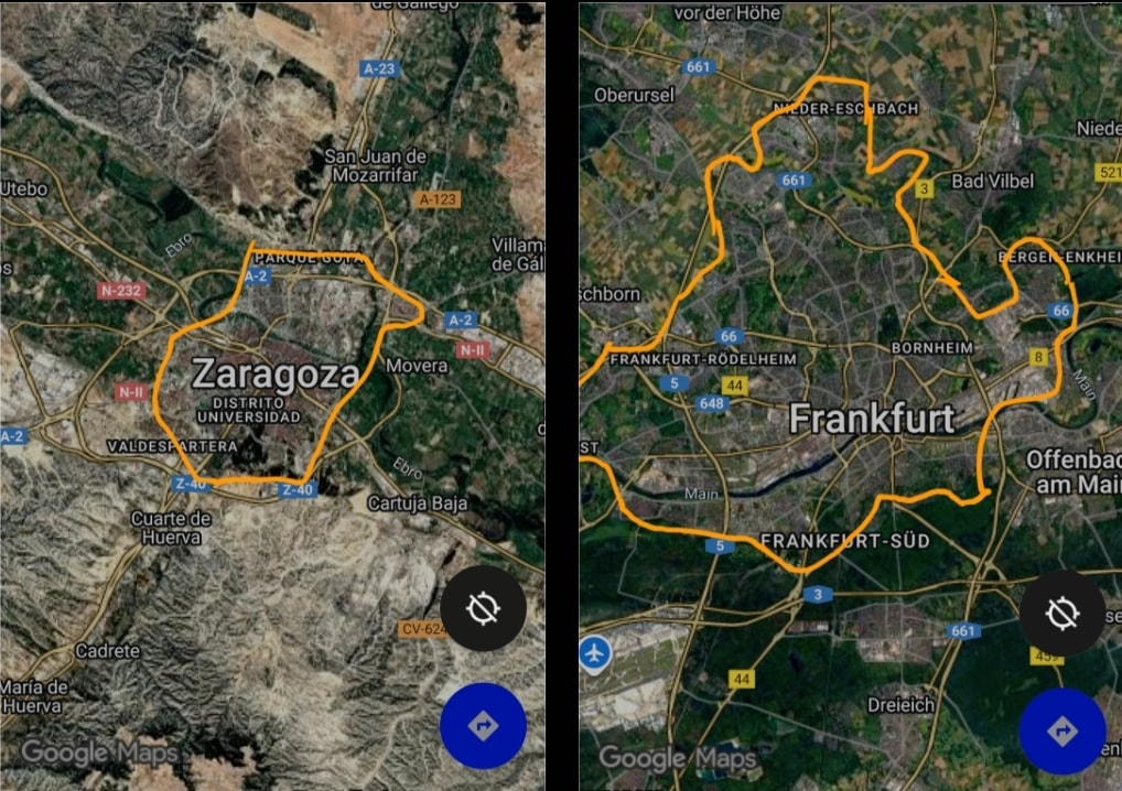 Y Frankfurt tiene un extenso área metropolitana alrededor con varios millones de habitantes. Zaragoza está rodeada de desierto. Por eso no tiene sentido aplicar una red de S-Bahn alemana a Zaragoza.