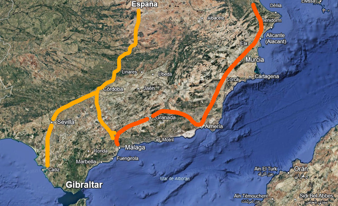 Sevilla y Málaga tenían que tener sí o sí, y pasando por Córdoba. Granada, no lo tengo tan claro, pero a largo plazo parece que es el punto de conexión del sur entre los corredores más atlánticos y el mediterráneo.
