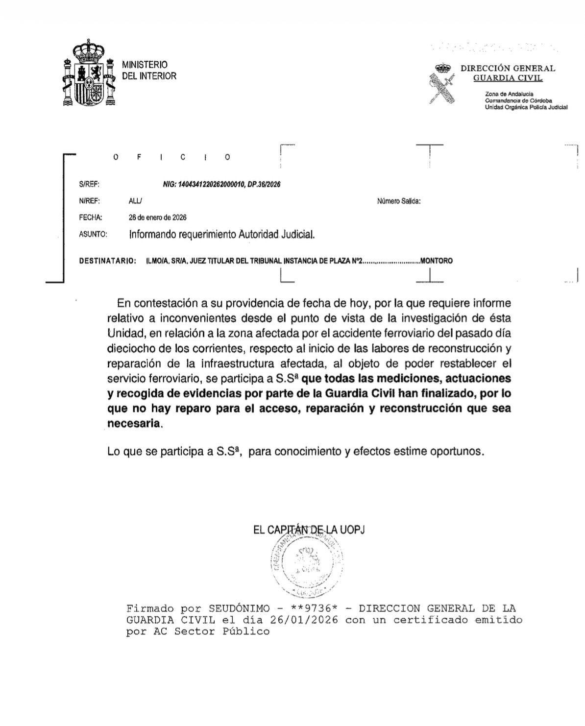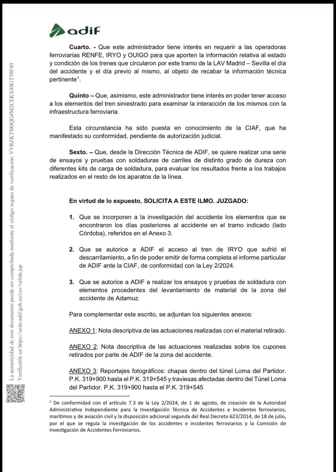 Todo transparencia y afan de buscar la verdad de lo sucedido en el accidente por parte de ADIF y el Ministerio. Menos mal que todavia tenemos una justicia y una guadia civil que hace su trabajo.