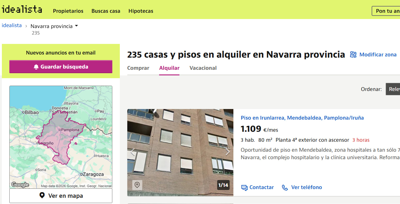 Increíble que en toda la CC.AA. de Navarra hay 235 viviendas para alquilar en Idealista. La oferta ha desaparecido: