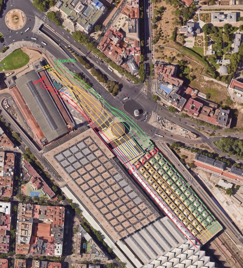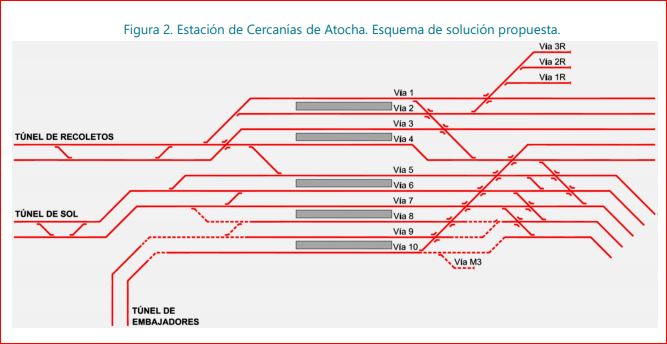 Al túnel de Embajadores se iban antes por el norte de Atocha Cercanías las vías 8, 9 y 10.