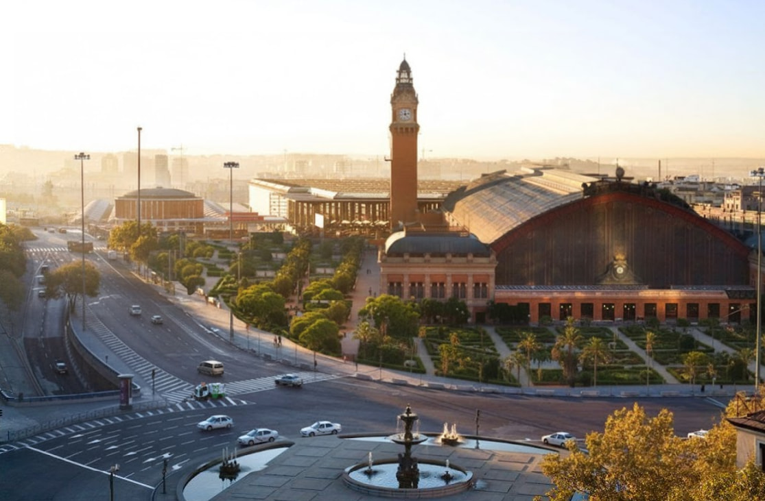 Dejo un pequeño edit simplemente elevando la estación y poniendo unos jardines alrededor, (y poniendo una torre del reloj a juego con la marquesina histórica…). Simplemente con eso, ya el entorno cambia una barbaridad. Si nos pusiéramos a quitar carriles, mejorar aceras, cambiar la entrada del túnel… tendríamos uno de los mejores espacios de la ciudad.