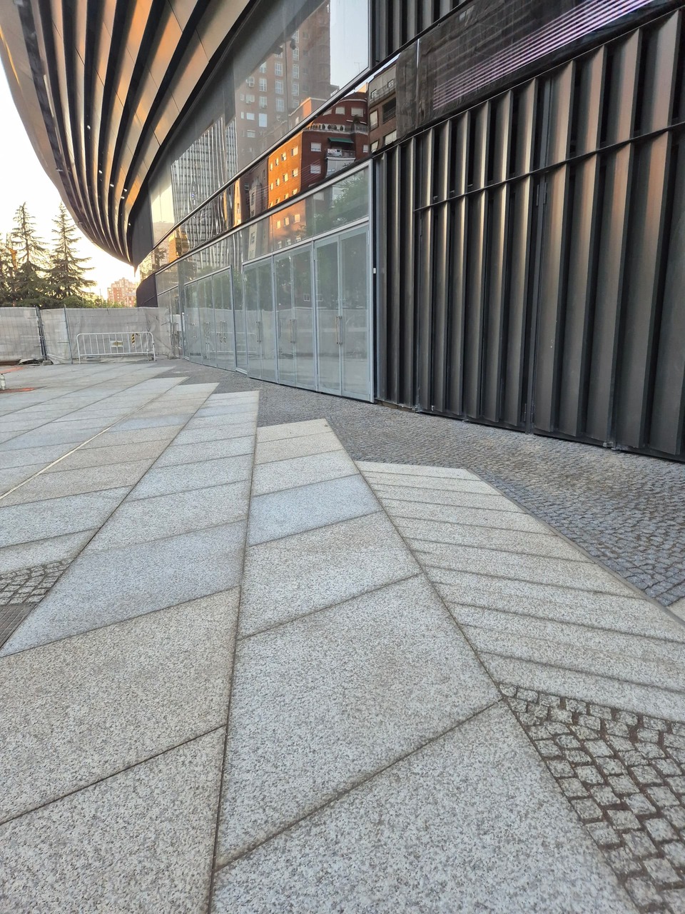 Qué manía se ha cogido en la ciudad de Madrid de no cortar la piezas de granito y dejar todo con dientes de sierra!