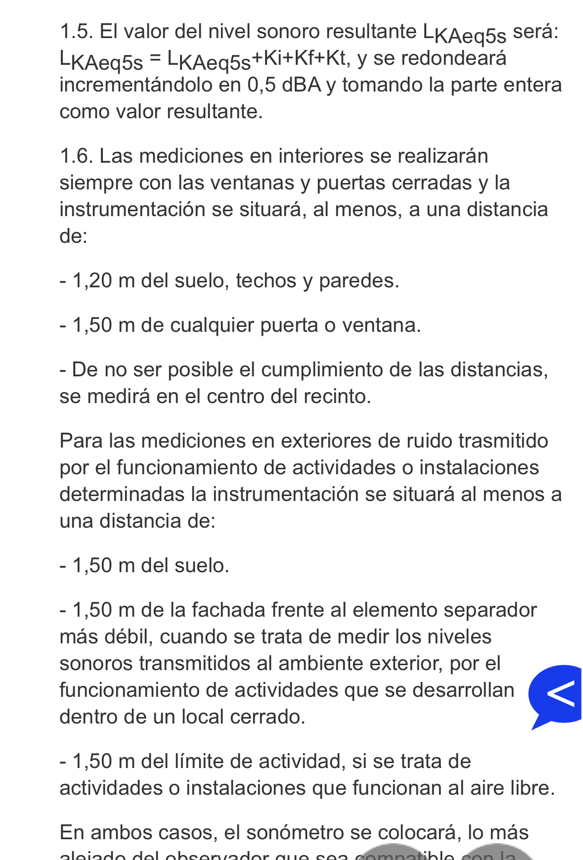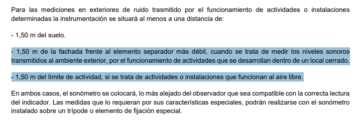 Y lo de los 1,5m es PARCIALMENtE correcto. Es decir, si hay infraccion y ruido por encima del limite de la zona que le corresponde se toman mediciones. Y entre esas mediciones esta la de medir a 1,5m del estadio. Tambien hay que medir en interior de vivienda y cumplir otros requisitos. Aqui abajo dejo el epigrafe donde lo pone.