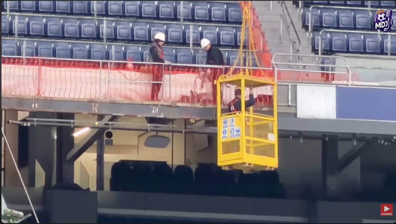 Parece que se han puesto con la obra para instalar el Banner Led del tercer anfiteatro en un par de sectores. Se puede ver a gente de Daktronics en la losa.