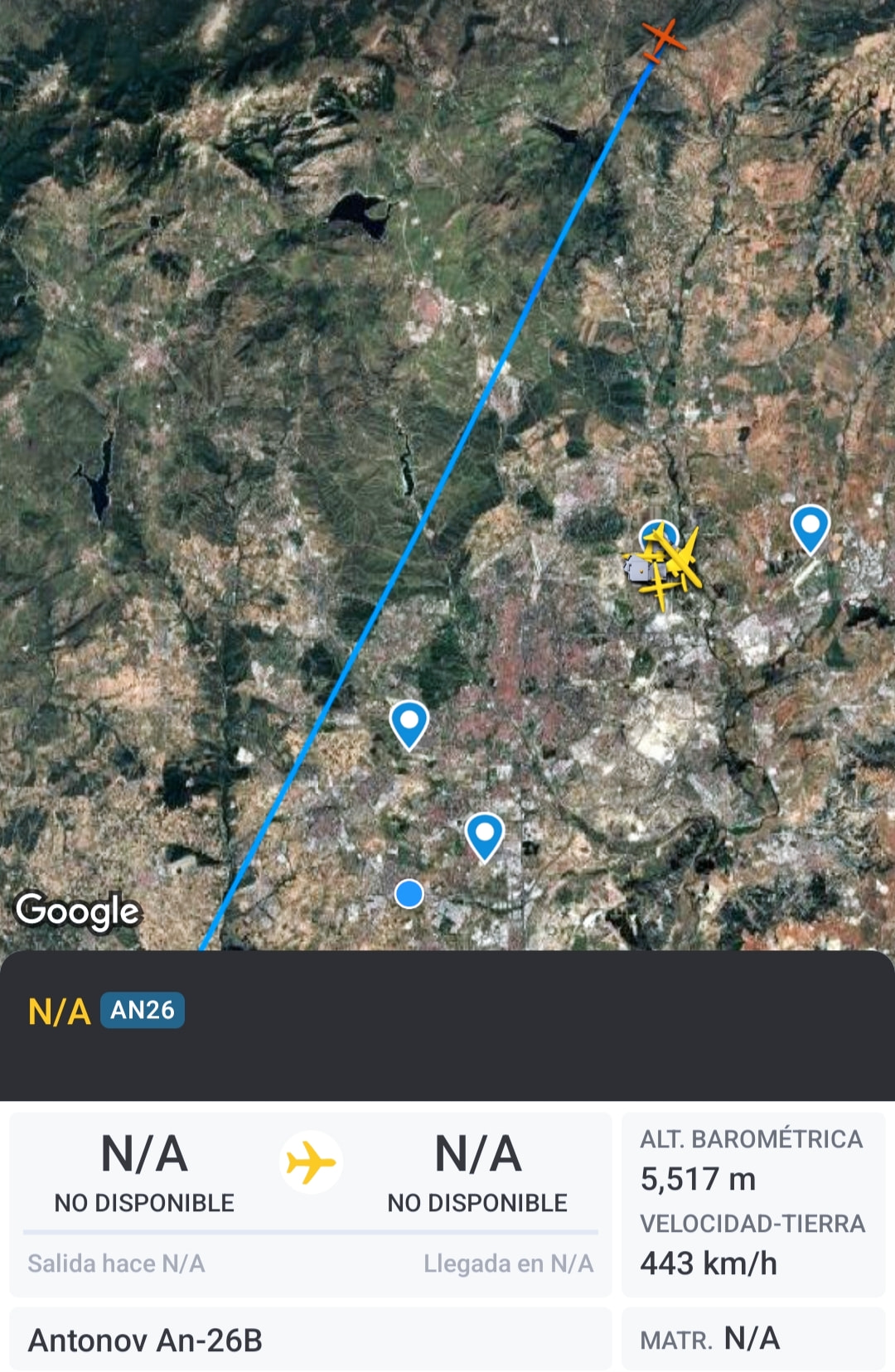 La madrugada del 11 de febrero, sobre las 2:30 de la noche, pasó un Antonov An-26B sobre España, dejando el característico ruido-zumbido a su paso por poblaciones cercanas, como Madrid.