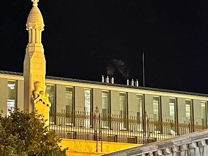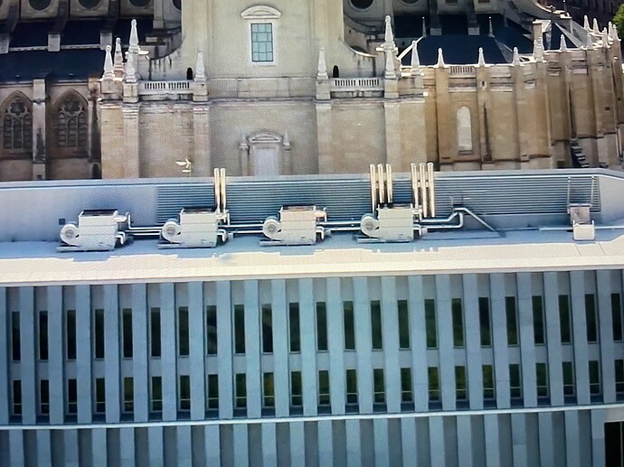 No soy arquitecto (menos de prestigio) pero: ¿no habría bastado con poner ese pequeño saliente que se ve por detrás de las chimeneas… justo delante?