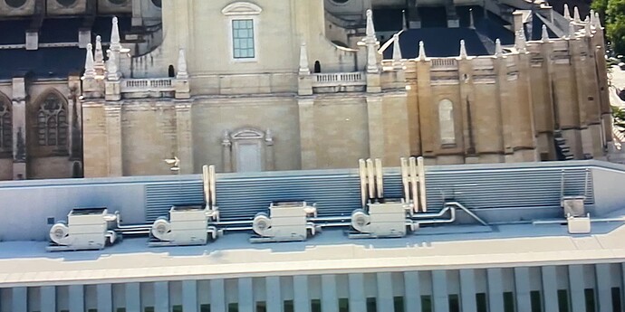 Unas chimeneas y sistemas de climatización que a cualquier estudiante de arquitectura le llevarían a un suspenso directo.