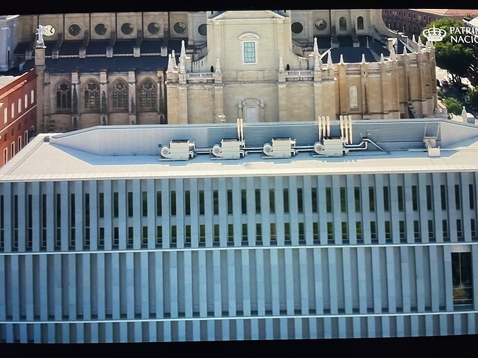 A mí, a falta de ver en persona el interior, el edificio me gusta mucho. Pero creo que hay cosas que se podrían haber resuelto mejor y que no me cuadran con la forma de hacer las cosas del estudio de Tuñón. La primera, la instalación de clima en cubierta. Hay soluciones para disimularla e integrarla de forma que no creen afección visual, como ocurre aquí, que aunque no se vea a pie de calle, está ahí y es más que evitable. La segunda, el acceso desde el mirador de la Armería. Creo que no está a la altura del resto del edificio, y a ello contribuye también el error que han cometido dividiendo ese espacio con la absurda verja que incumple cualquier criterio de conservación del Patrimonio y que se han saltado todos los organismos competentes. Lo mismo me pasa con la hornacina de la Almudena y sus complementos (candelabros, macetas de plástico en su base, jardineras del todo a 100…) Entiendo perfectamente que había que mantener allí la imagen de la Almudena, pero no era necesario repetir formalmente lo que había. O dejas la hornacina original o haces algo mucho más conceptual. No lo veo. Y por último el ascensor en el acceso desde el Campo del Moro. Es un pegote monumental que me da la sensación que no estaba en el proyecto y se ha incluido después por obligación de normativa de accesibilidad. Algo parecido a lo de las escaleras de evacuación de la Caleido. Viendo su ubicación, podría haberse situado de forma que se accediese desde el espacio que hay entre la escalera y el primer basamento y desembocara en el nivel superior formando parte del volumen de ladrillo. Por lo demás, la imagen del muro que da al Campo del Moro, me parece imponente.