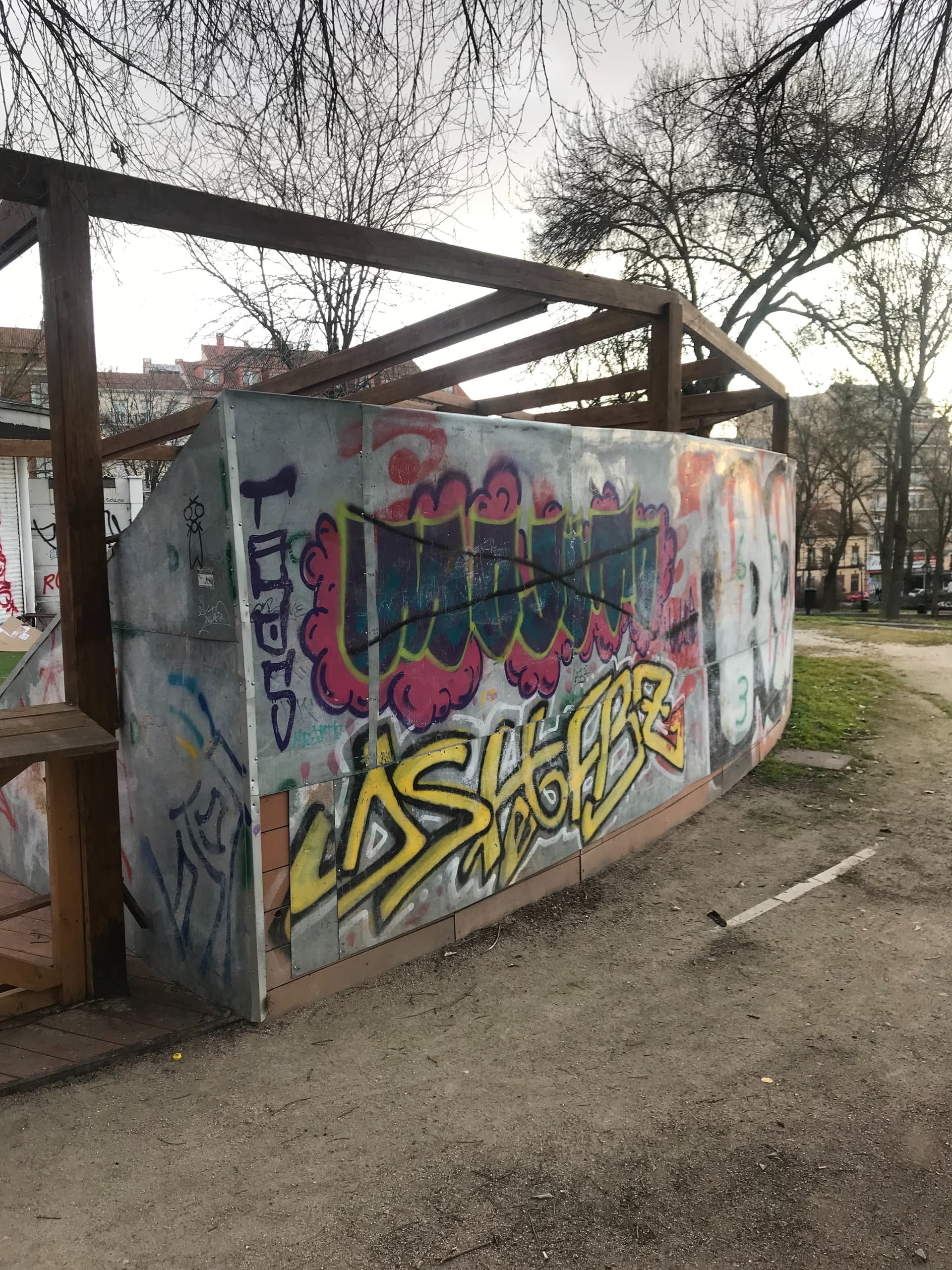 Las pintadas tienen pinta de llevar mínimo 10 años ahí… vómitivo