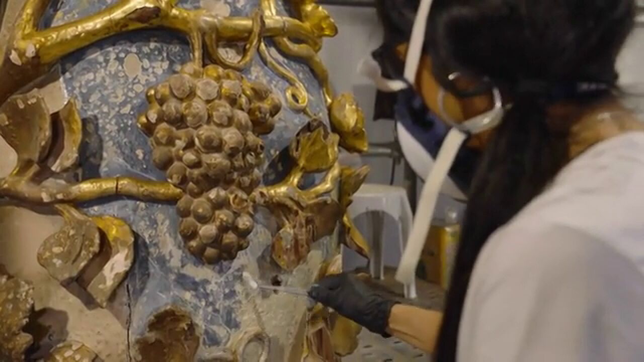 Las columnas salomónicas ya restauradas.