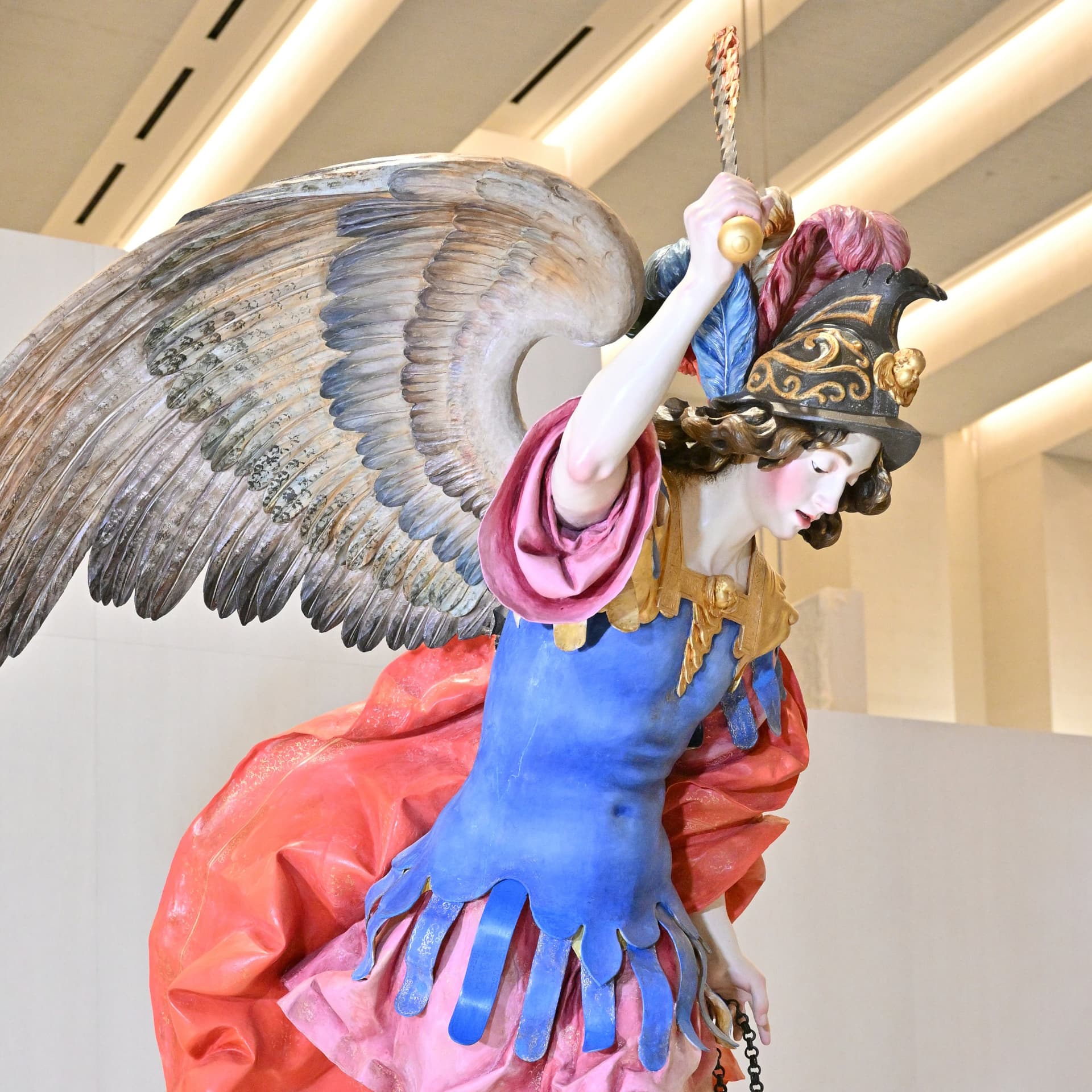 Hay que reconocer que no es fácil reponer la estatua en un lugar apropiado, detrás de la verja no la veo, delante quizás.