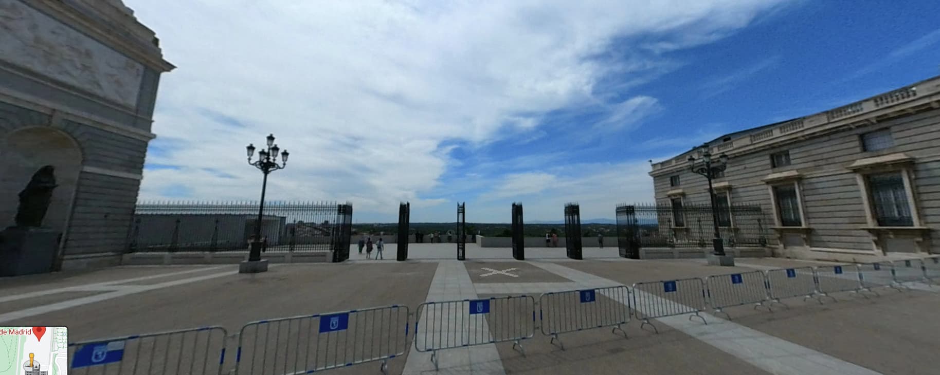 Yo la pondría, sin bolas herrerianas, delante de la verja en el lado derecho, el más cercano al Palacio Real.