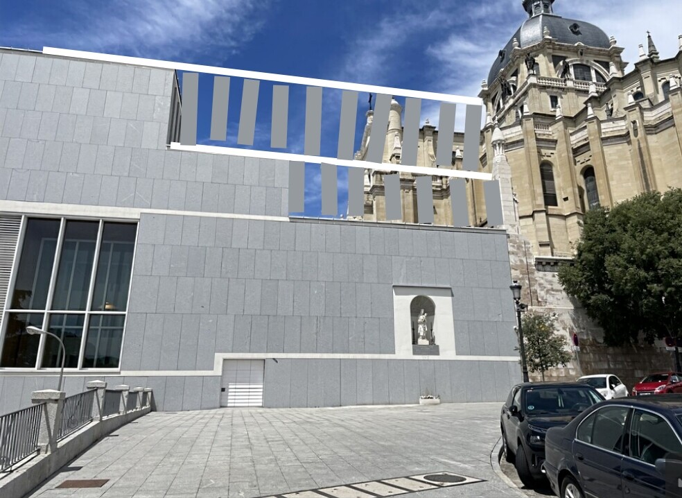 Viniendome arriba en mi ensoñación, ya que esa fachada volada no necesitaría tamizar el sol, podría tener la hilada interior con distinta separación entre pilares generando un efecto descentrado progresivo muy sugerente.