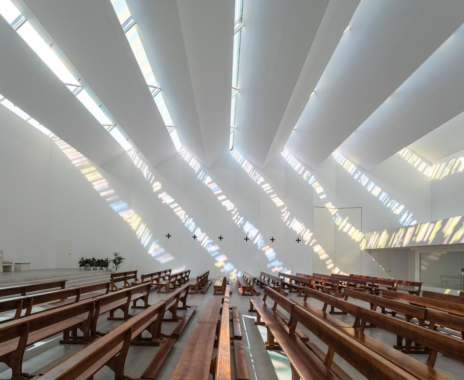 Ubicada a las afueras de Granada, en el barrio de Almanjáyar, esta iglesia presenta una silueta dentada con los siete lucernarios que rematan su cubierta quebrada, proyectando juegos de luces y colores. Desarrollado durante catorce años, el proyecto busca generar una arquitectura sencilla y acogedora para la oración. Con capacidad para doscientas personas y un coste de 1.211.692 euros, la obra está realizada con elementos prefabricados de hormigón. Con una superficie construida de 1.106 metros cuadrados, el conjunto incluye un campanario, un amplio coro, una sacristía y salones parroquiales, adosados a la parte trasera del templo.
