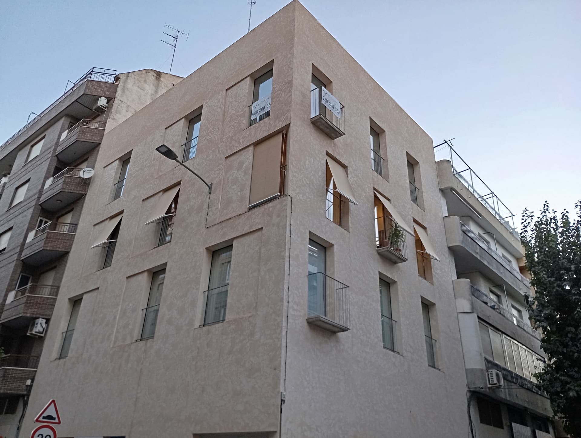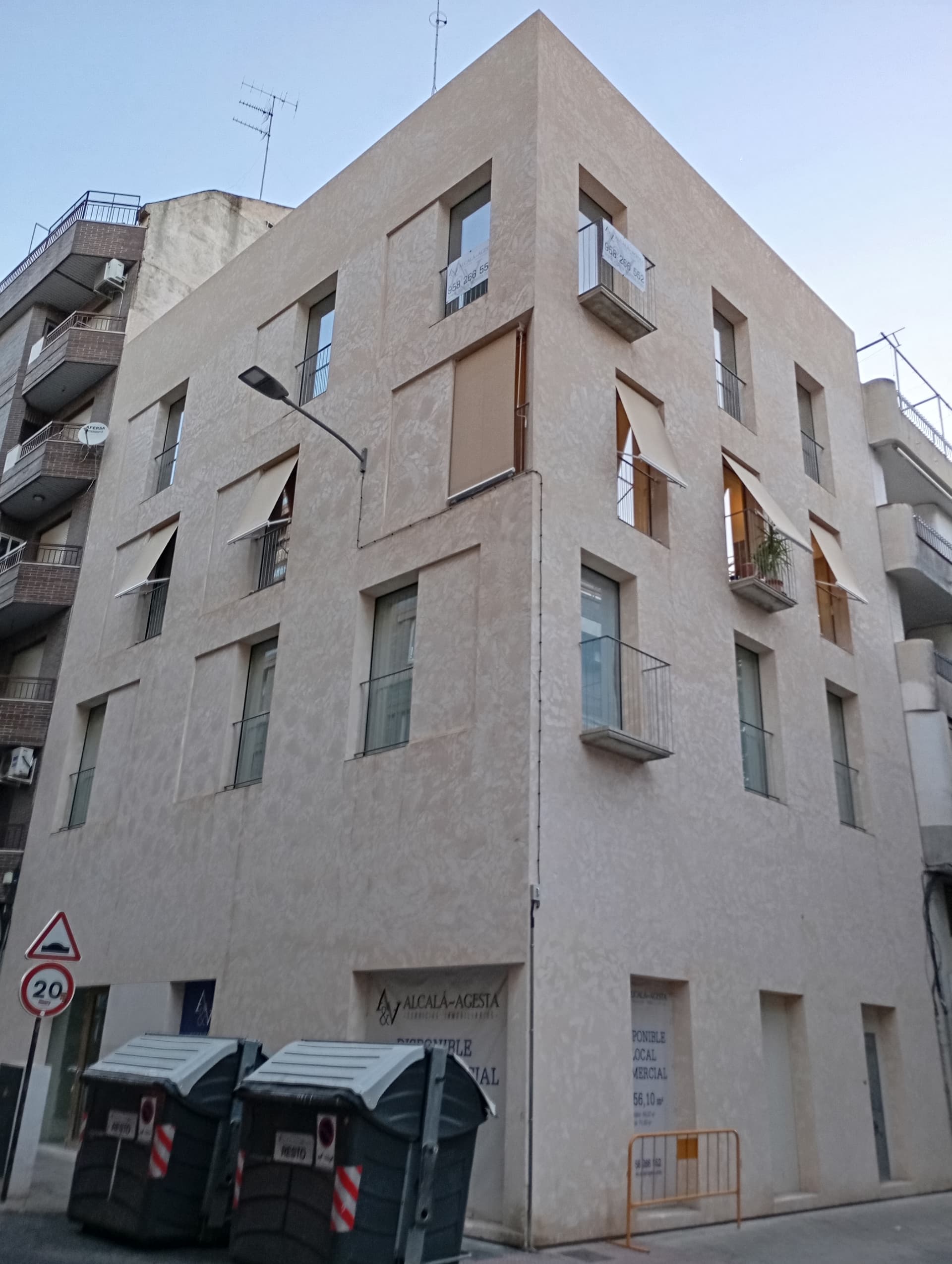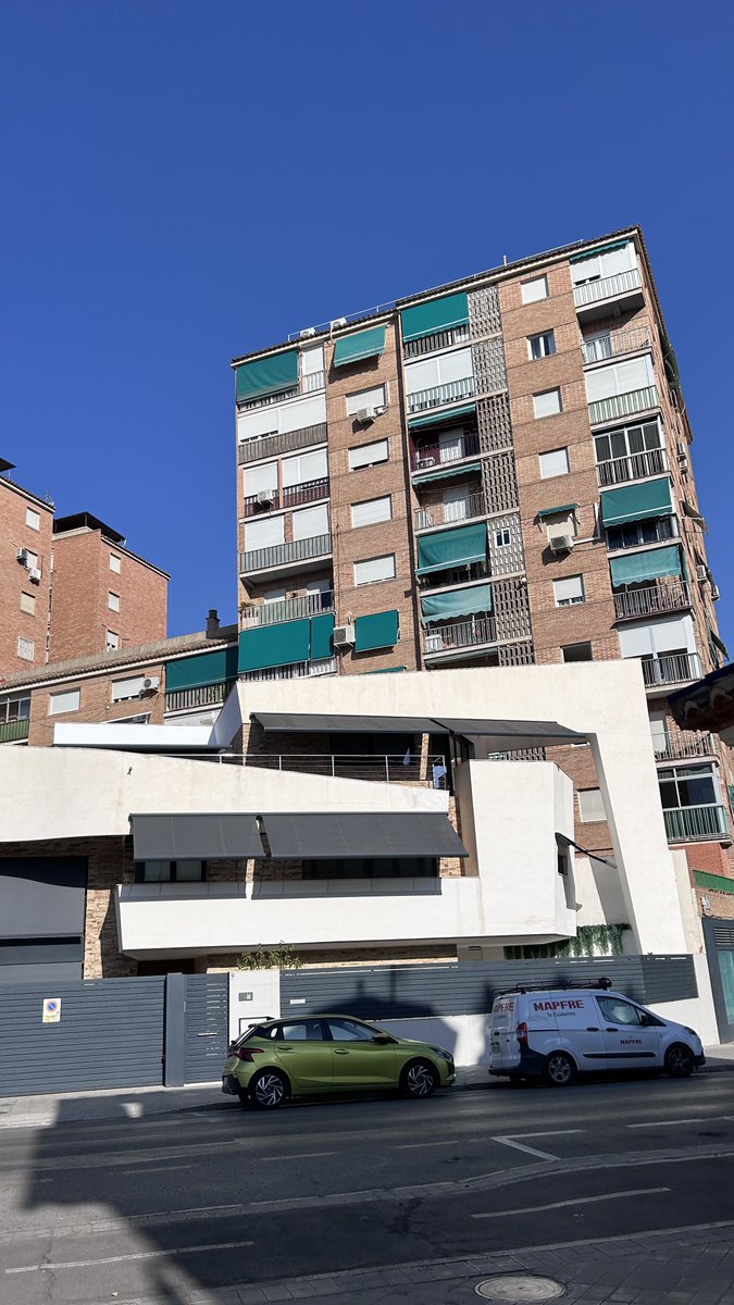 Es muy chulo. Es del mismo arquitecto que el edificio que compartí arriba. Le quedan muy mal esos toldos y esa farola. Que el Ayuntamiento si sabe que esa fachada va a tener una servidumbre de iluminación podrían haberle hecho integrar al arquitecto un tubo en la fachada para el paso del cable. Lo de Granada y los cables es una historia de amor bastante intensa ![]()