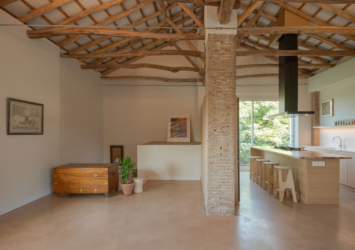 El proyecto recupera parte de un granero, construido en los años cincuenta, que se encuentra en el interior del recinto de un extenso cortijo cerca de la ciudad de Granada.