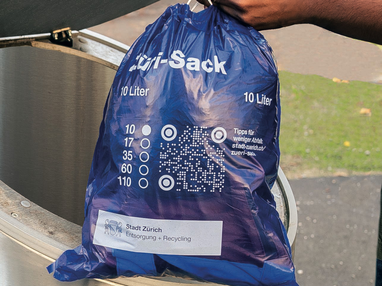 La basura se saca en bolsas del cantón o municipio que se compran en el super. Las hay de distintos tamaños. Son caras, por ejemplo El pack de 10 bolsas de 35 litros vale 16,20 CHF, a 1,60 CHF la bolsa o 0,05 CHF el litro.