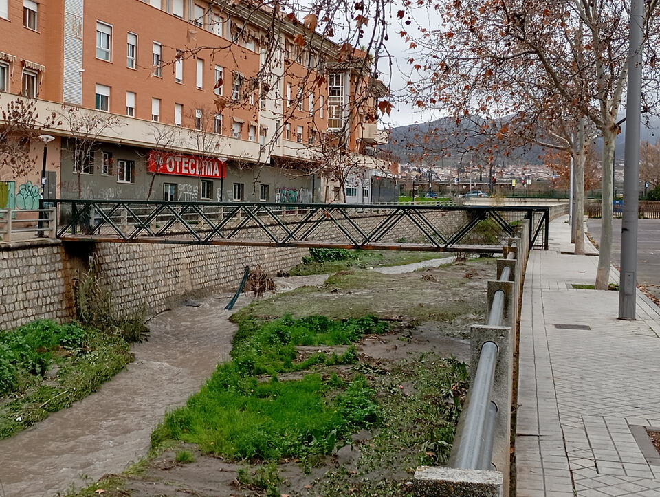 El Monachil ha arrastrado mucho lodo y barro, ahora apelmazado y atrapado por la Vegetación
