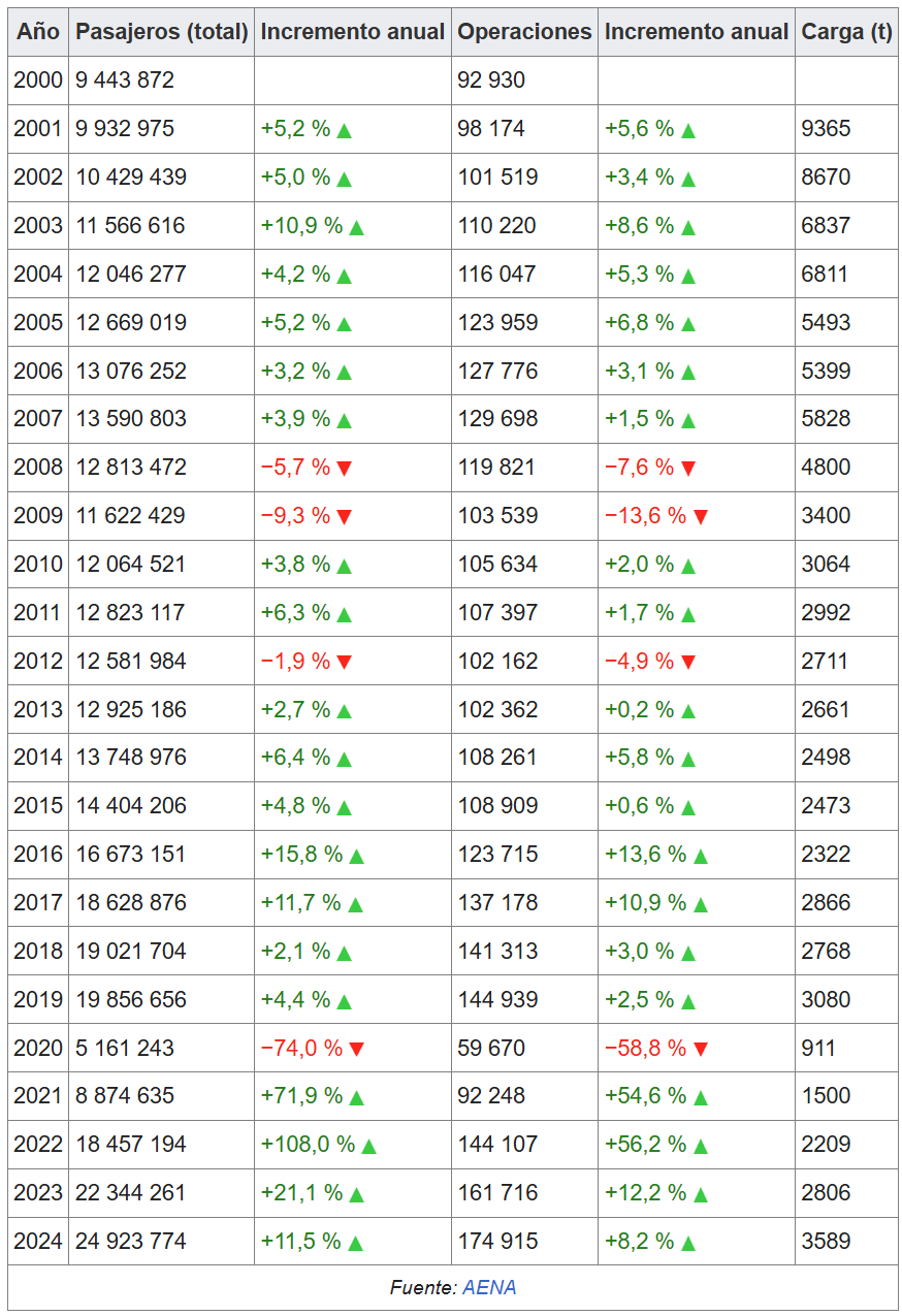 Comparado con el de Granada, que en el mismo período ha ganado poco más de 500000 pasajeros al año:
