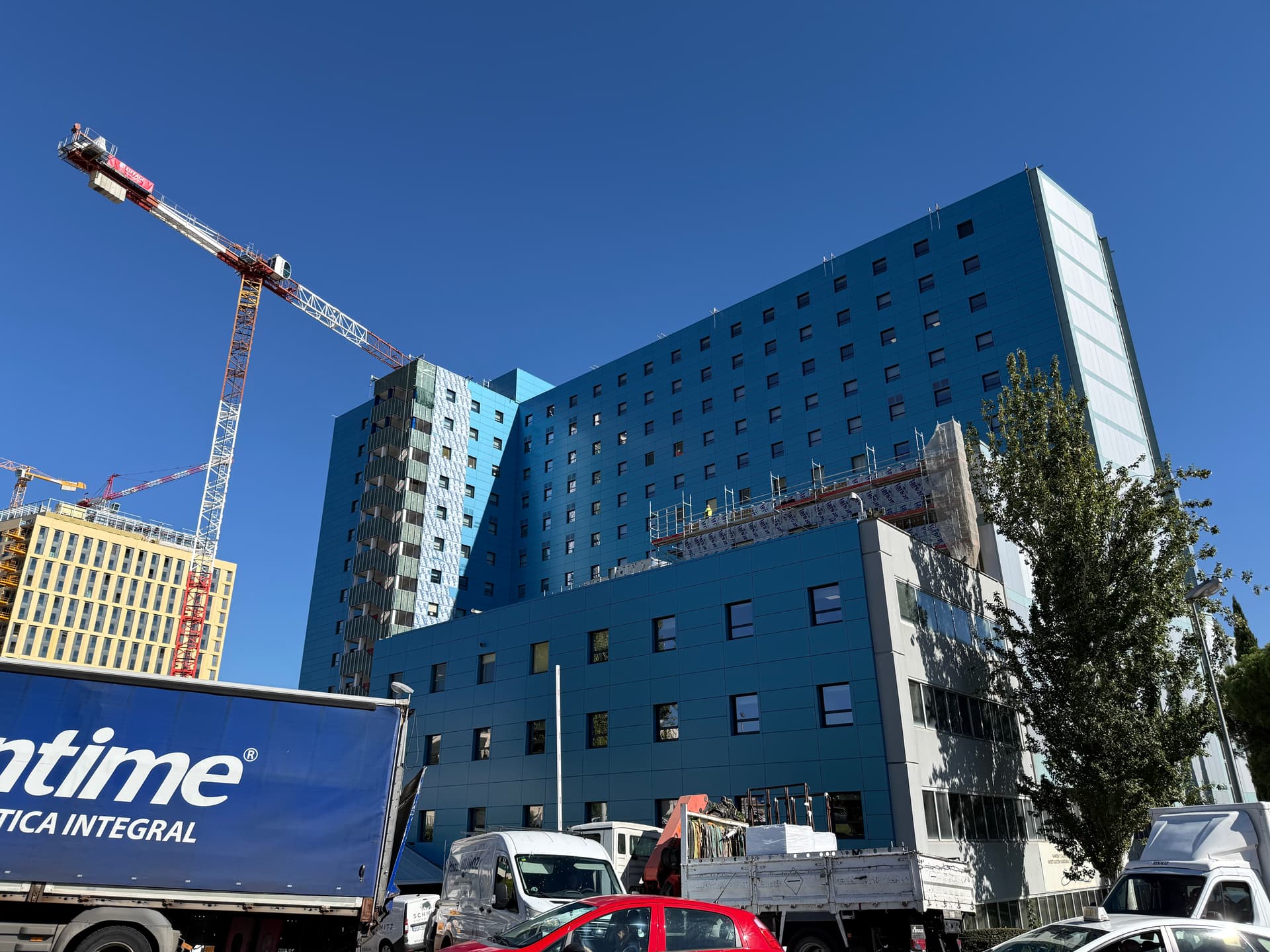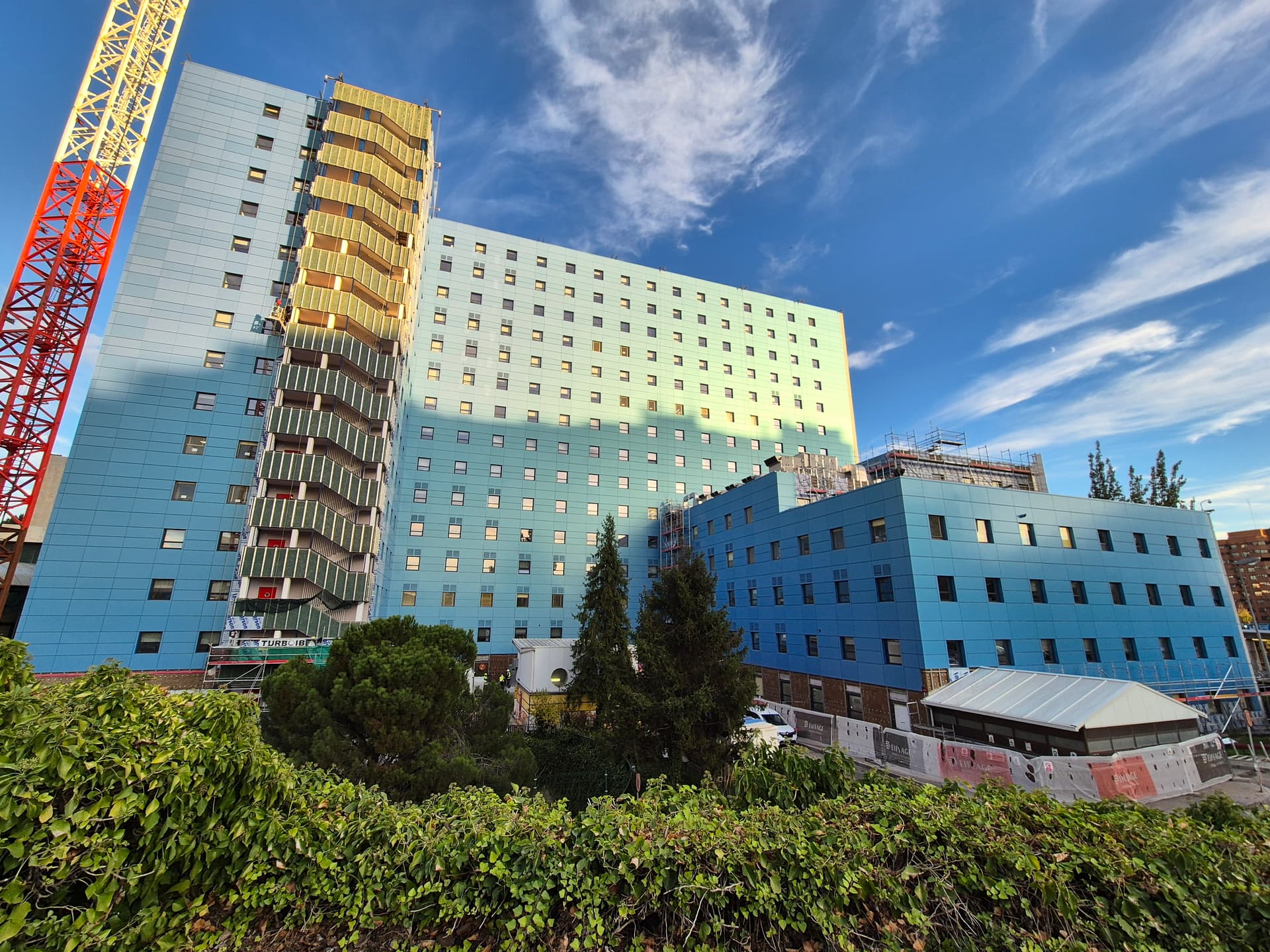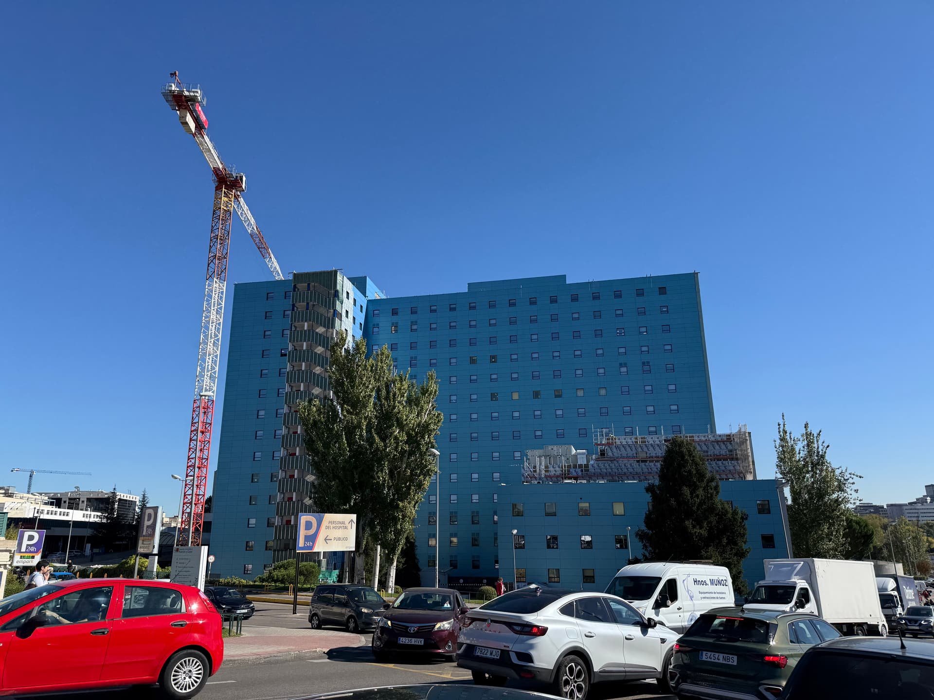 A mí me gusta, antes era un color un tanto soso, y le da vidilla a la zona, lo estoy mirando ahora mismo y te dejo una foto, en especial con referencia al hospital La Paz para que compares, que ojalá con la reforma de la CIudad de la Salud quede interesante también:
