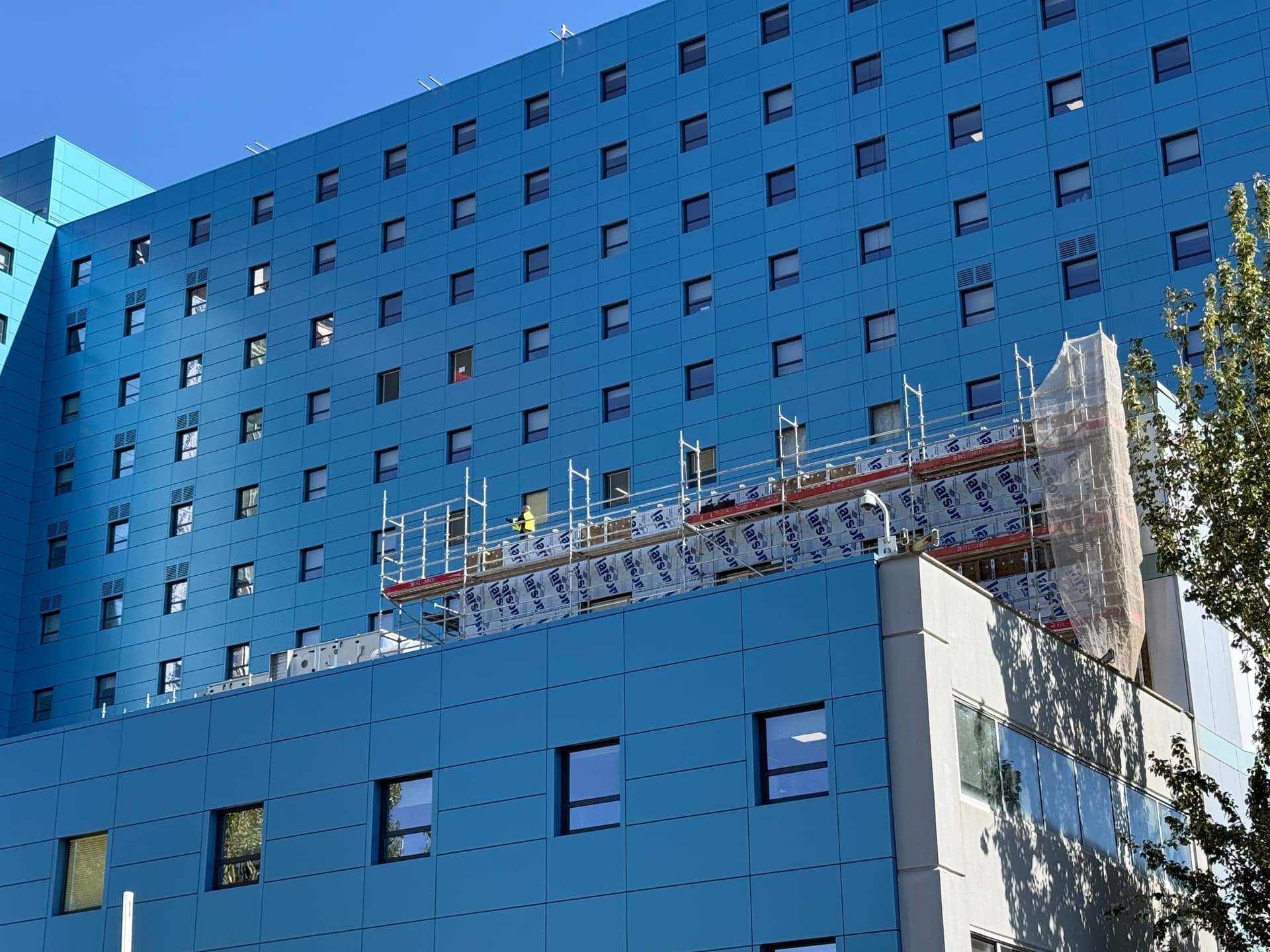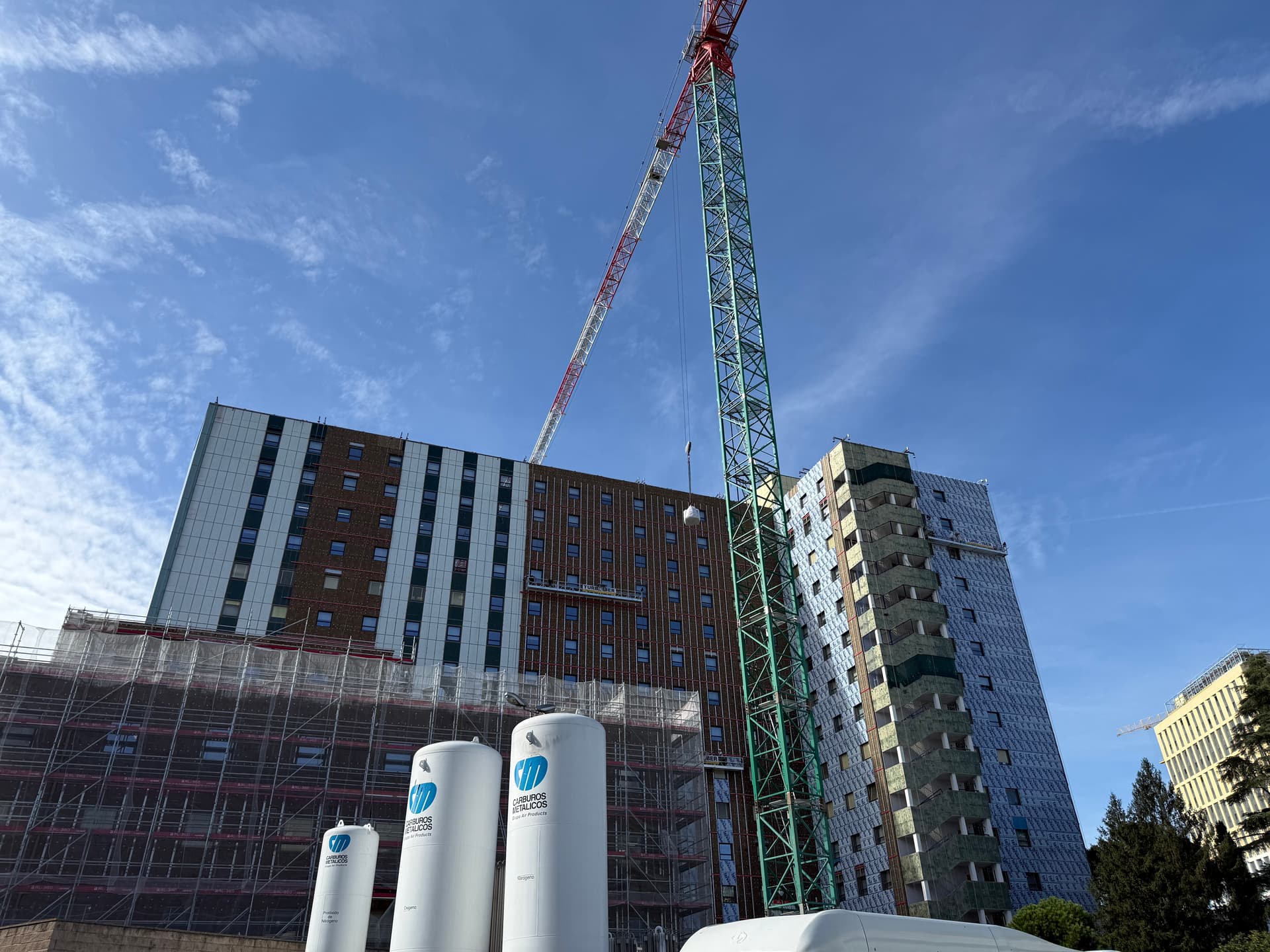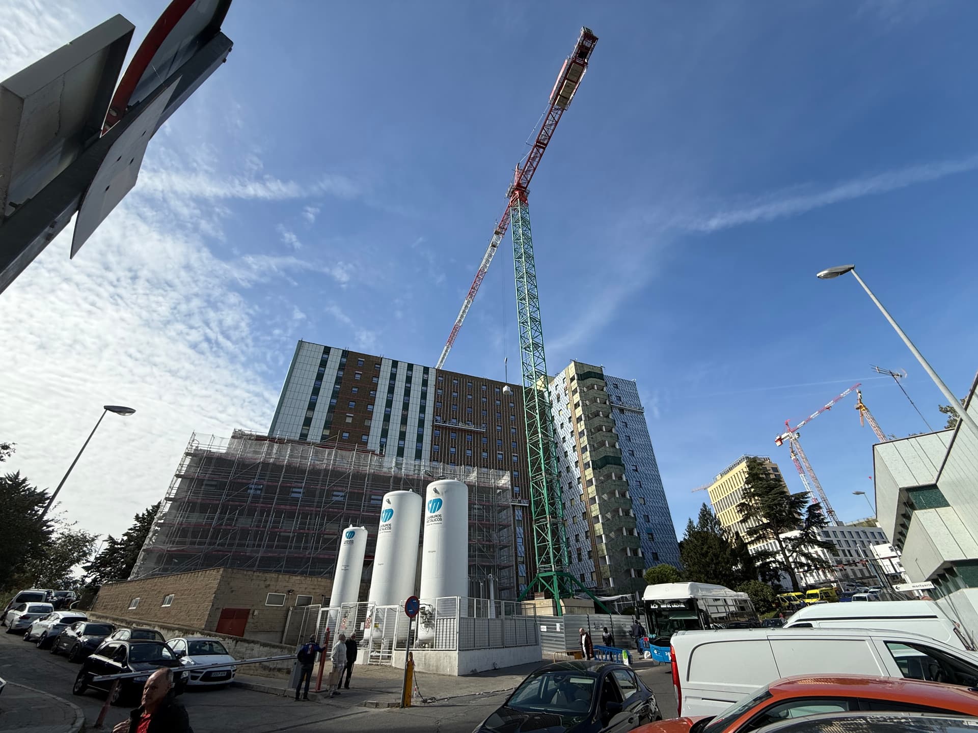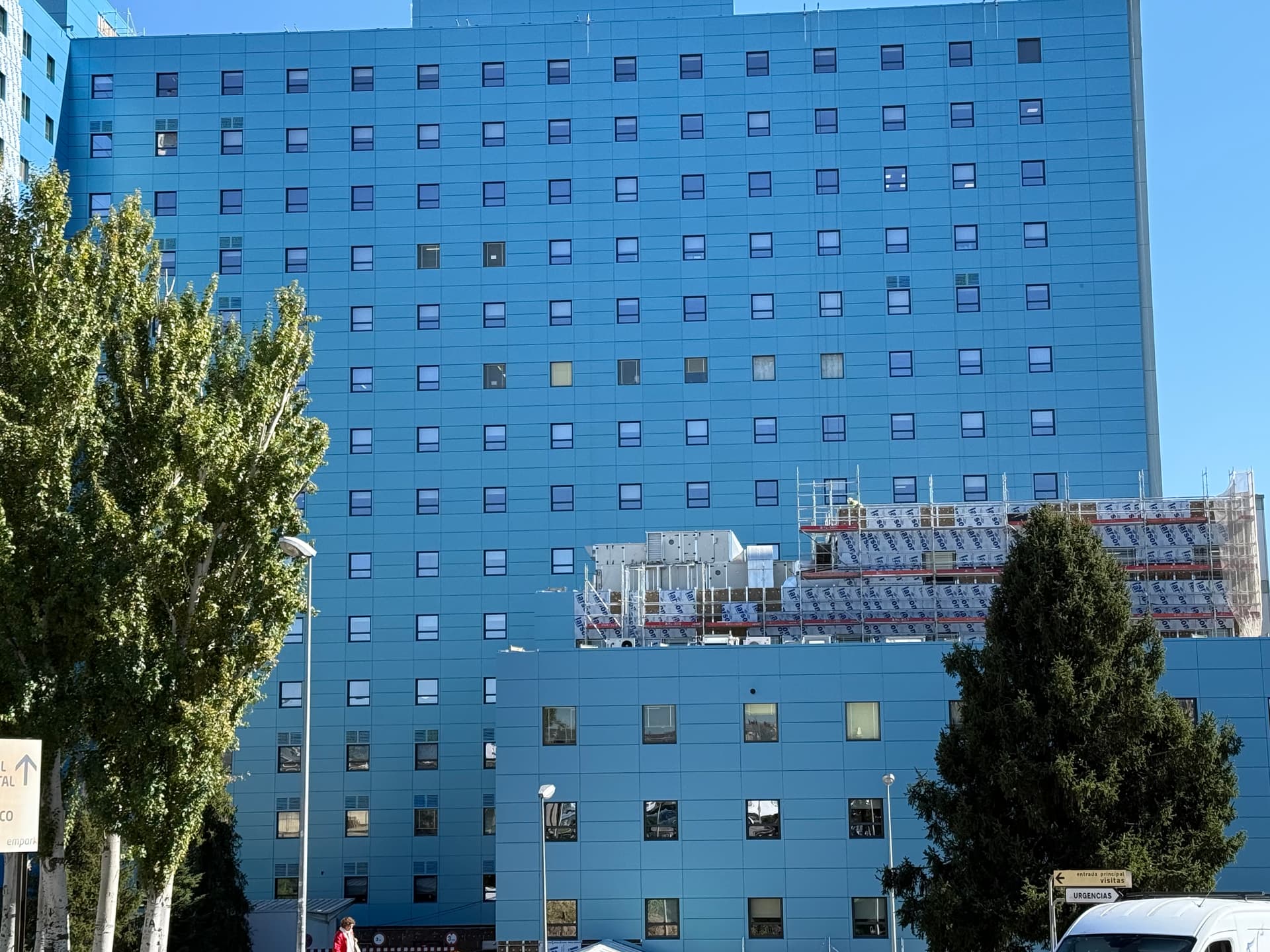 A mí me gusta, antes era un color un tanto soso, y le da vidilla a la zona, lo estoy mirando ahora mismo y te dejo una foto, en especial con referencia al hospital La Paz para que compares, que ojalá con la reforma de la CIudad de la Salud quede interesante también: