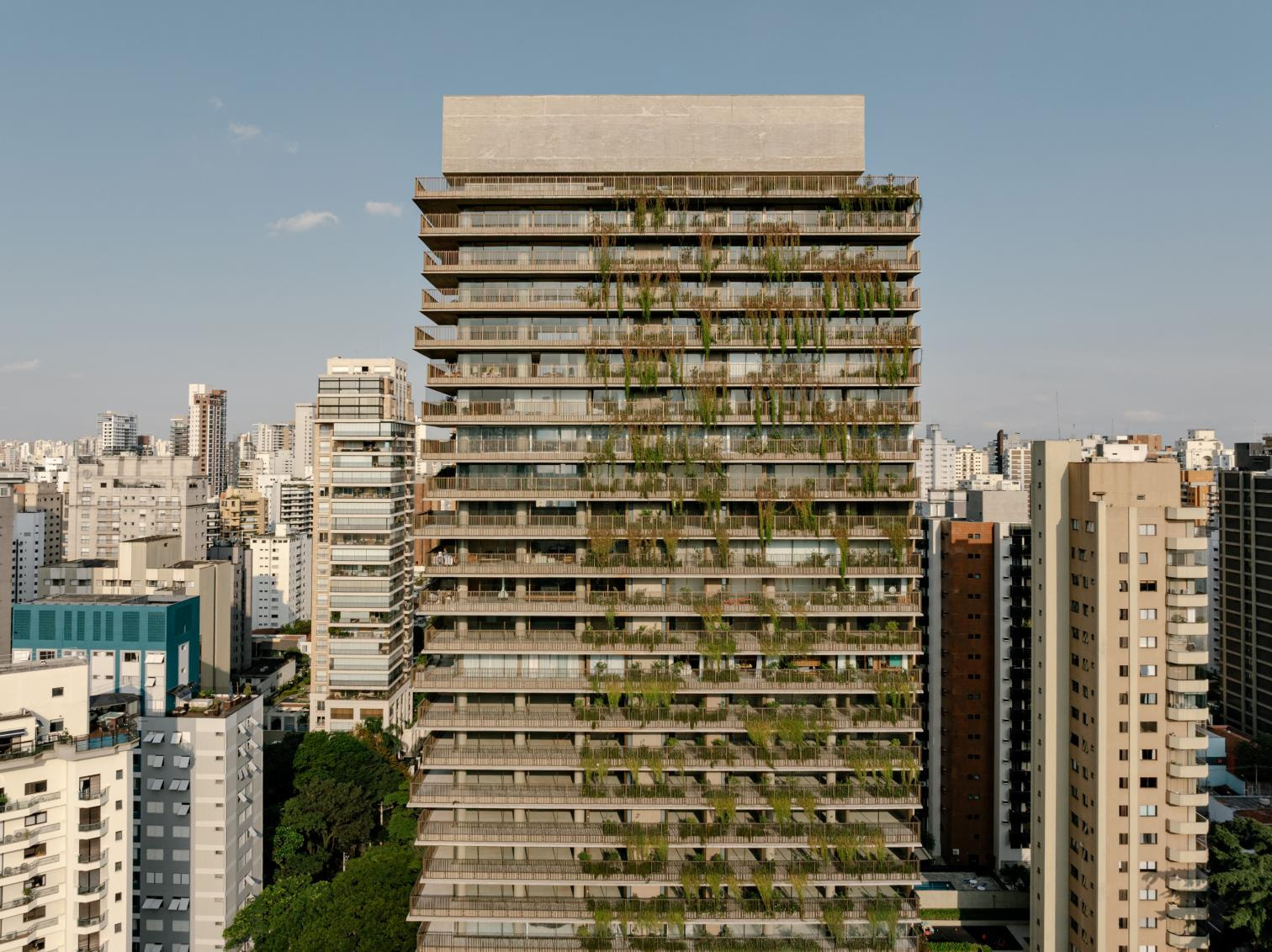 El edificio Ibaté está situado en una parcela en esquina del barrio de Vila Nova Conceição, en São Paulo, un área que actúa como zona de transición entre un eje urbano de alta densidad y un tejido residencial más bajo y tranquilo. Esta condición híbrida del entorno fue determinante para las decisiones de proyecto, especialmente en lo que respecta a la relación del edificio con la ciudad y a su forma de ocupación del terreno.