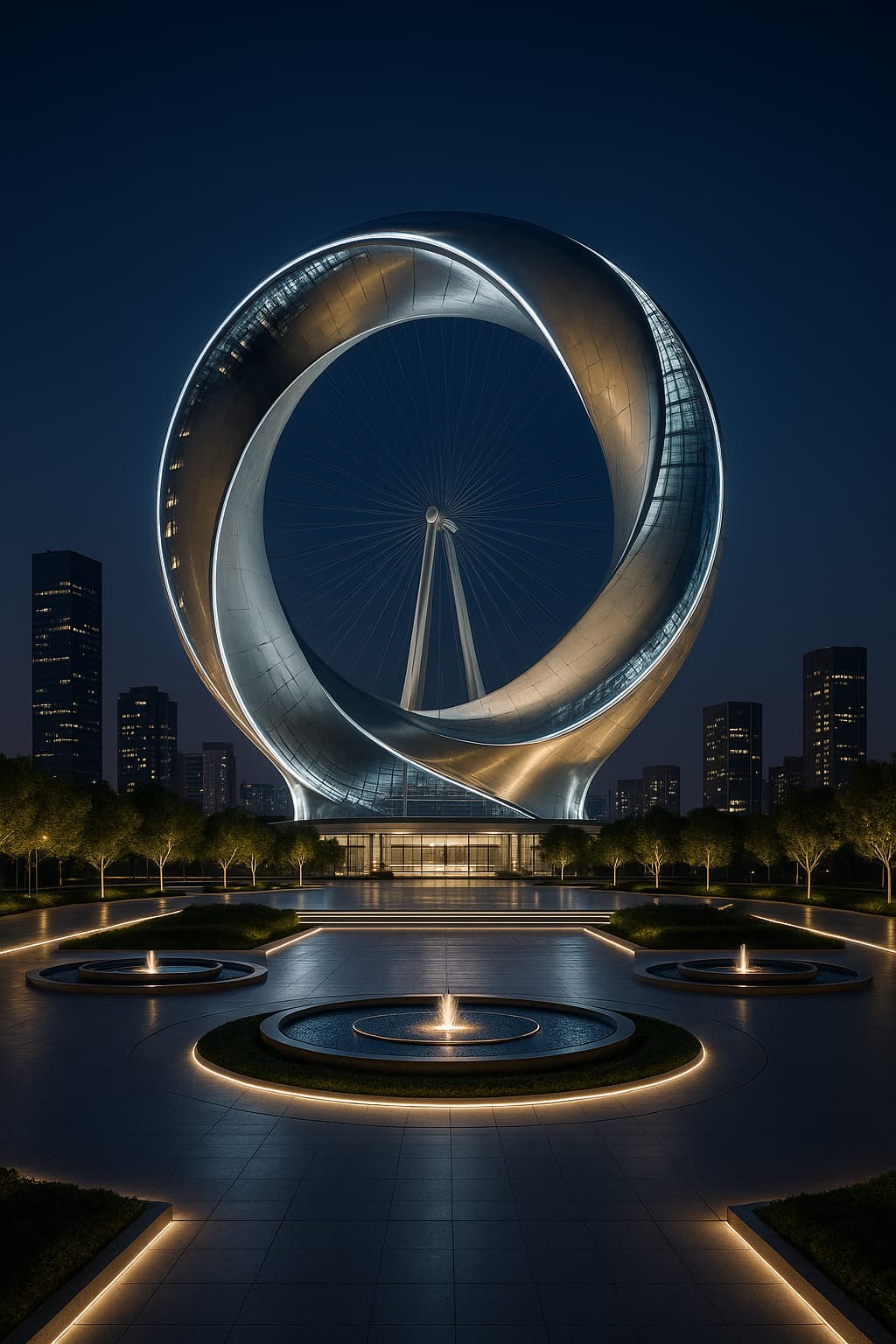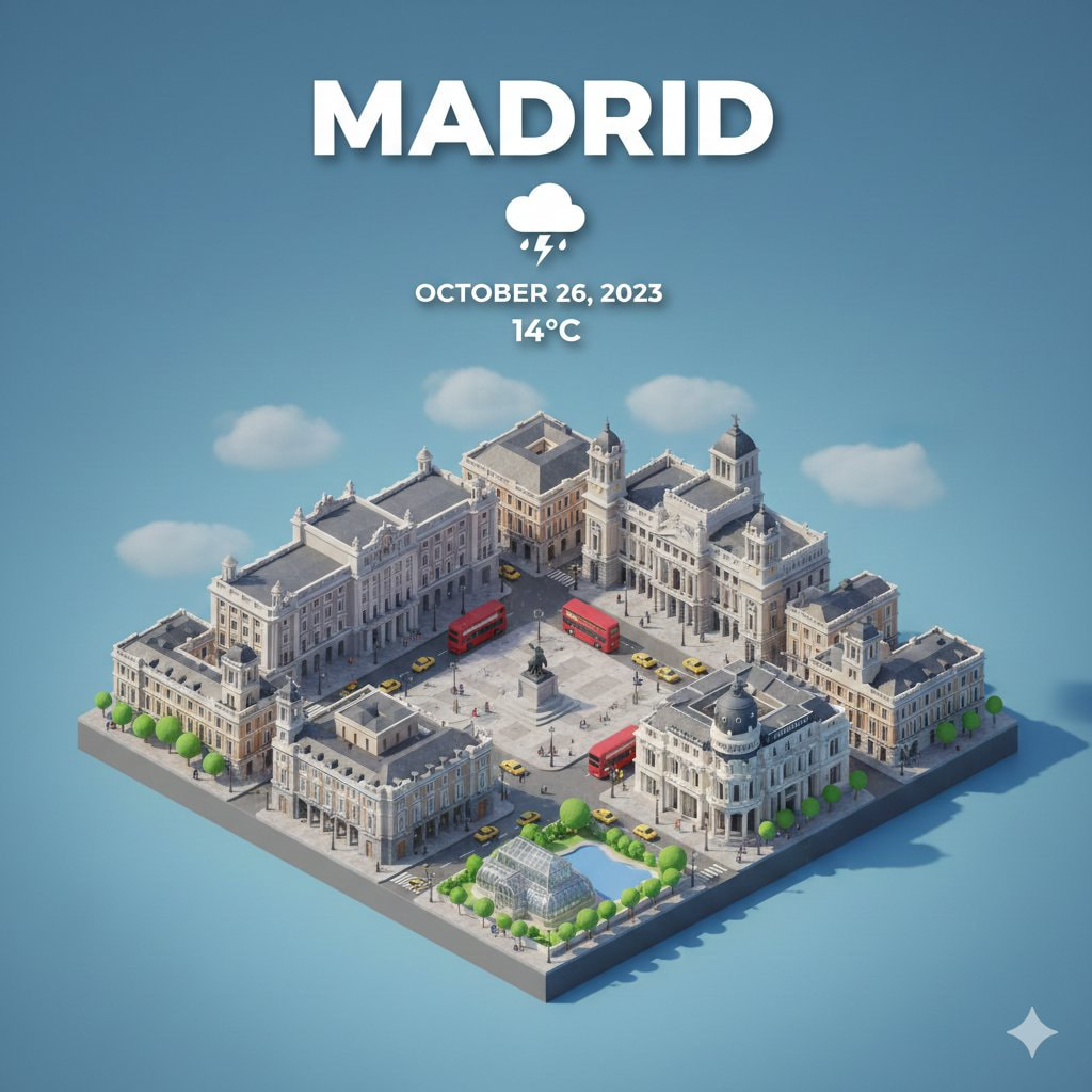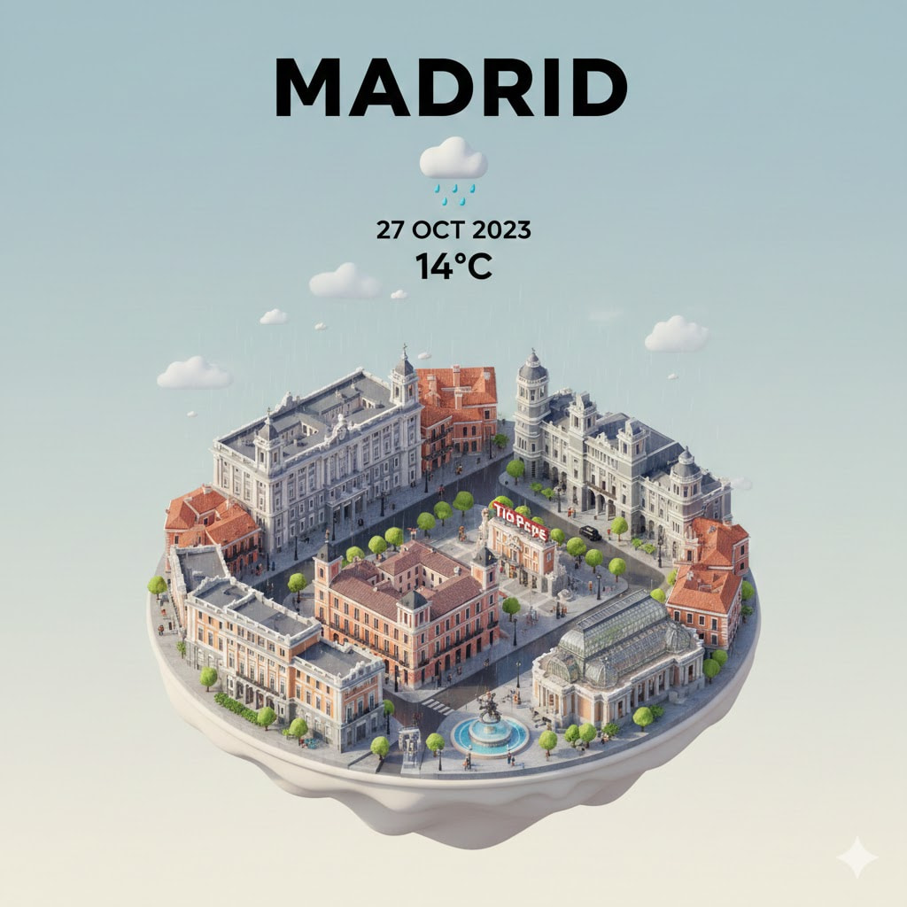 Le daría una forma inspirada en un torbellino o un huracán, simbolizando la fuerza, la energía y las ganas de Madrid de avanzar y arrasar con todo. Sería una manera visual y potente de representar el espíritu imparable de la ciudad.