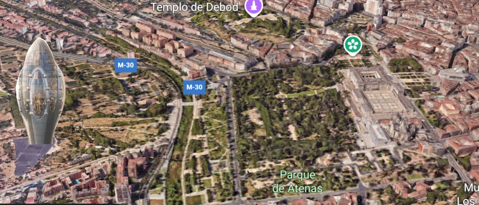 Pero por favor… que no sea la sede corporativa del malvado doctor Falete… que sino menudas vistas desde el mirador del Palacio Real. Una noria normal de hasta 100 metros ya me parecería una barbaridad desde ahí.