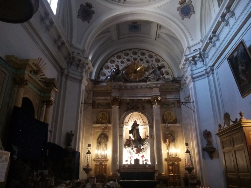 Y tiene una iglesia de planta de cruz latina, una sola nave dividida en tramos, decorada interiormente por entablamento y cornisa volada,