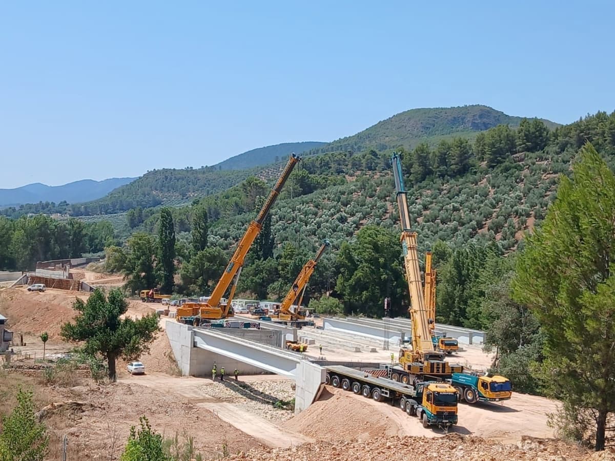 Las obras avanzan al buen ritmo, con el 72% ejecutado, gracias a la instalación esta semana de siete vigas de 41 metros sobre la segunda estructura, que va sobre el río Trujala. A finales de verano, también se instalaron con éxito las ocho primeras vigas, de 32 metros, de la primera estructura sobre el río Orcera, que no solo salvan el cauce del río, sino que también mejoran la conexión con la carretera provincial que da acceso a Orcera. Para el izado de vigas ha sido necesario el uso de cuatro grúas de gran tonelaje que trabajaron de forma simultánea. Asimismo se sigue trabajando en la fabricación de las 14 vigas restantes, que completaran la segunda estructura sobre el río Trujala.