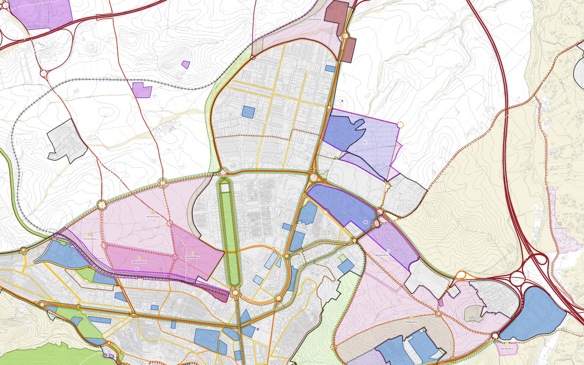 Tras meterme en la página resumo los planos más interesantes, a falta de leer lo demás. Nada nuevo que no se supiera sobre la idea de cerrar la ronda norte, a la que se une como novedad la unión de la avenida Ben Saprut con el estadio, unido a la ya comentada ampliación del campus universitario.