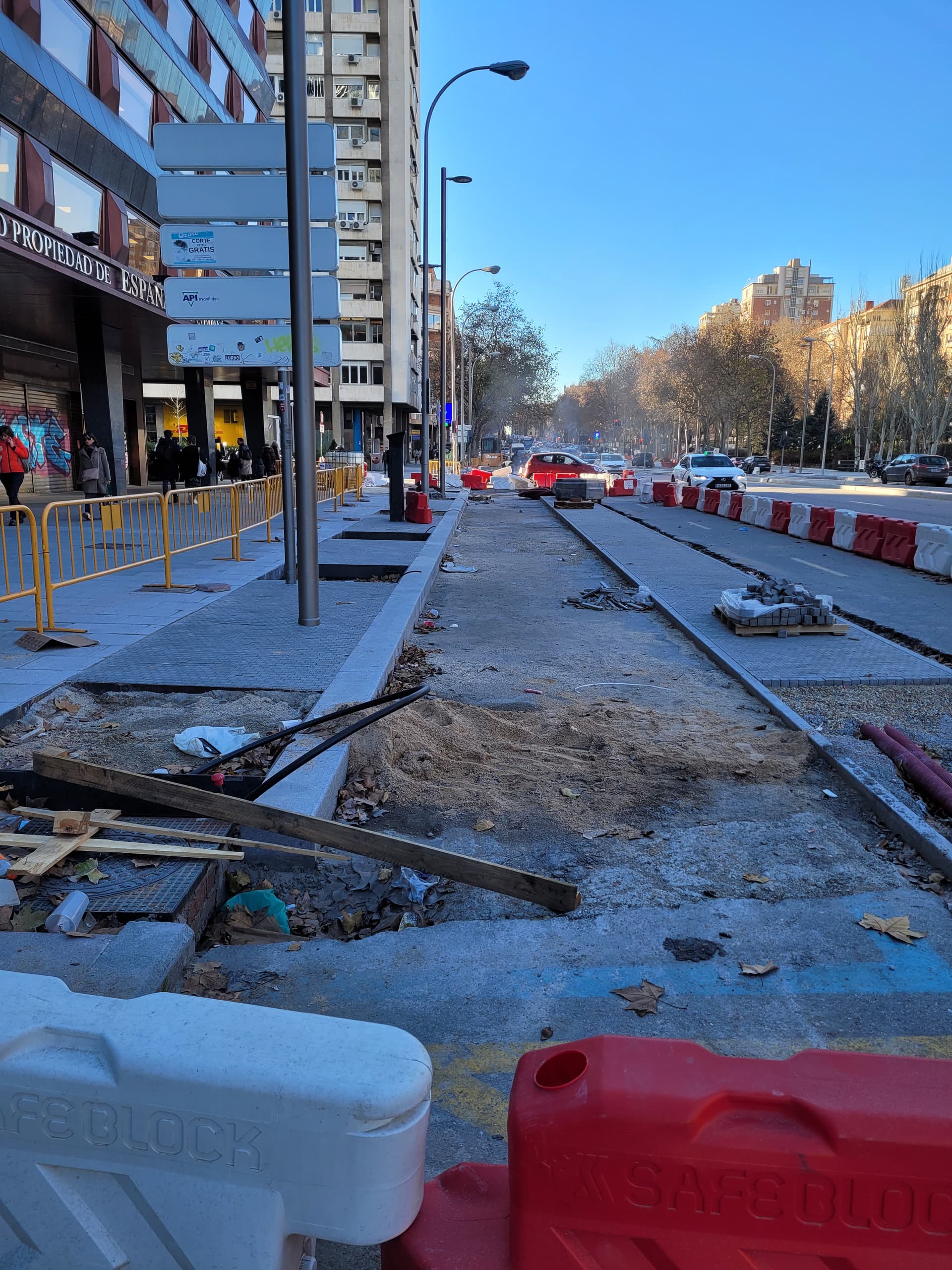 Otro carril bici segregado del mismo tipo que la calle Alcalá, también lo están haciendo así en Doctor Esquerdo.