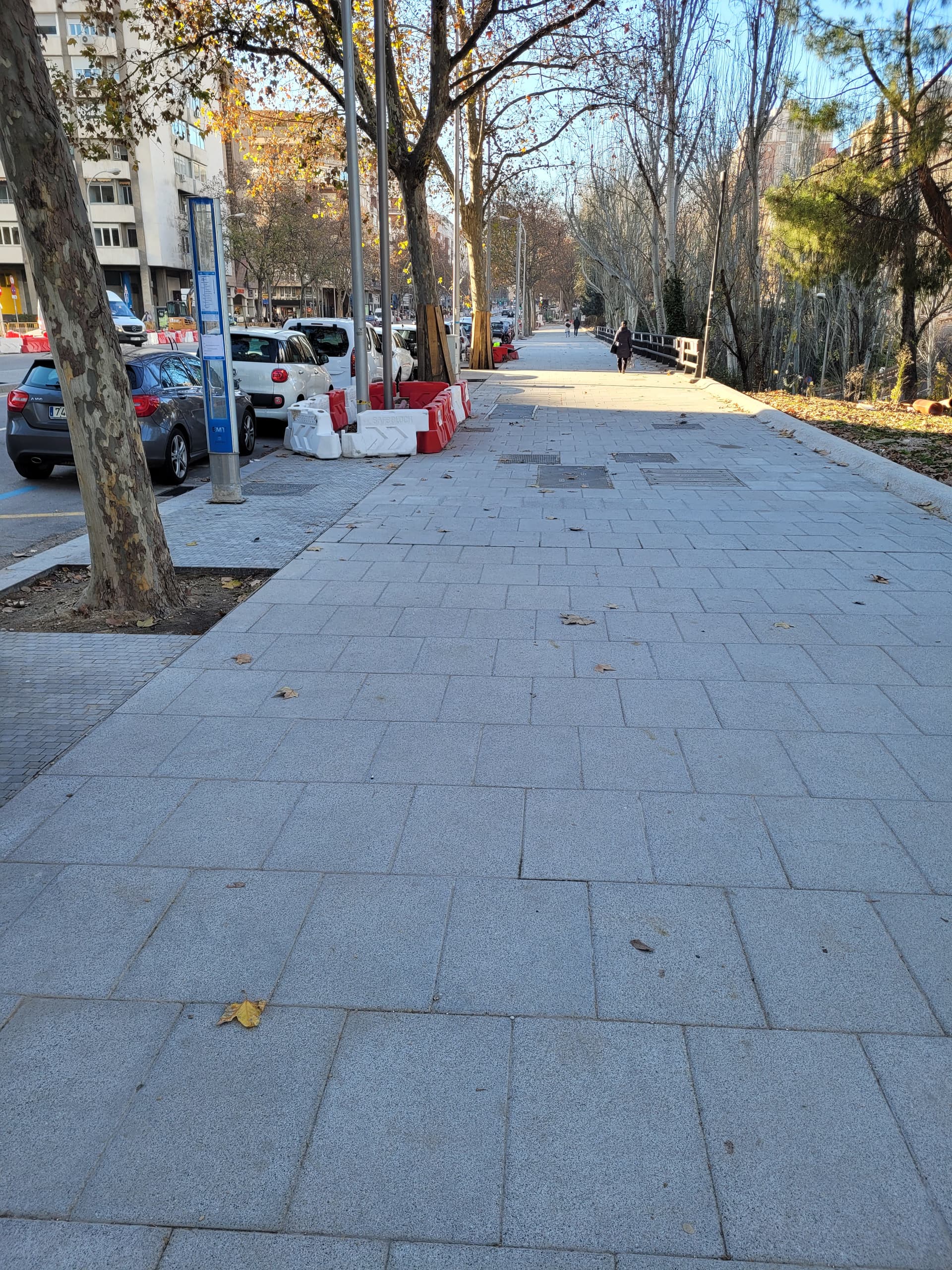 Otra cosa que podían haber hecho es no hacer alcoques, ampliando la zona ajardinada hasta donde llegan los alcorques, pero entonces quedaría una acera muy estrecha donde está la rampa del aparcamiento subterráneo.