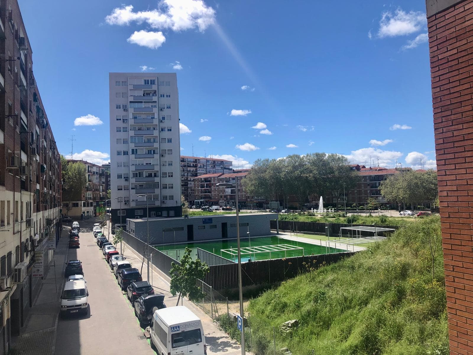 La piscina del paseo de la Dirección tiene un color digno del increíble Hulk. No sé nada de mantenimiento de piscinas al aire libre pero ¿no habría convenido echarle una lona para taparla la mitad del año que no está en uso?