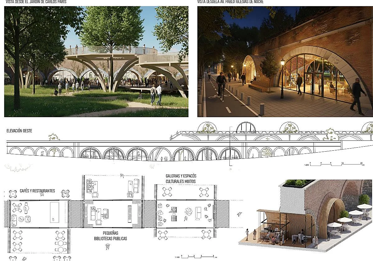 A mi me gusta como idea, aunque depende del uso que se diera podría funcionar o no. Me recuerda mucho a los espacios que hay bajo el viaducto del metro en Camden Town, aunque aquello está enfocado a comercio en una zona con mucho tirón. En uno de los vanos hay hasta un pequeño cine.