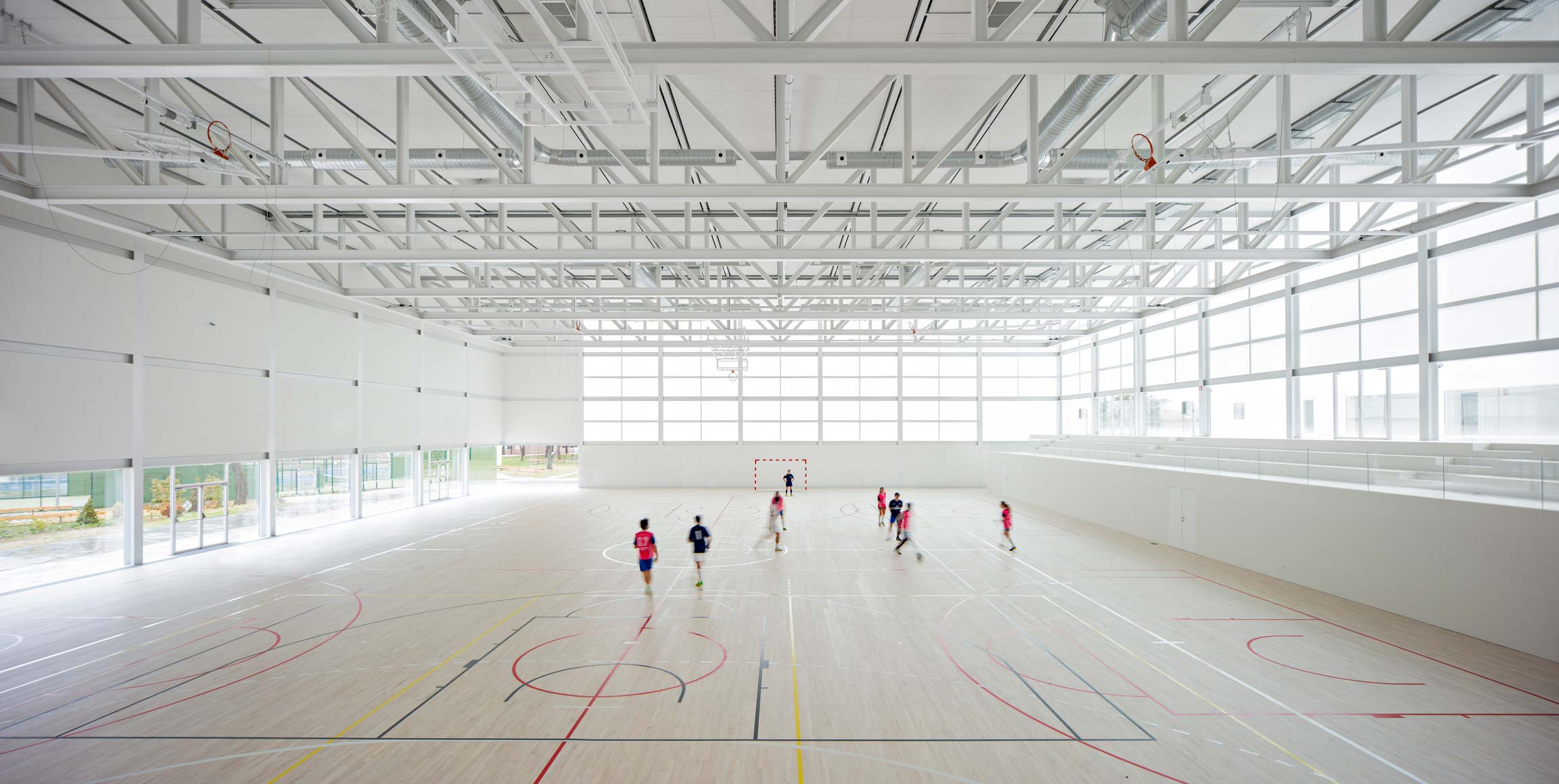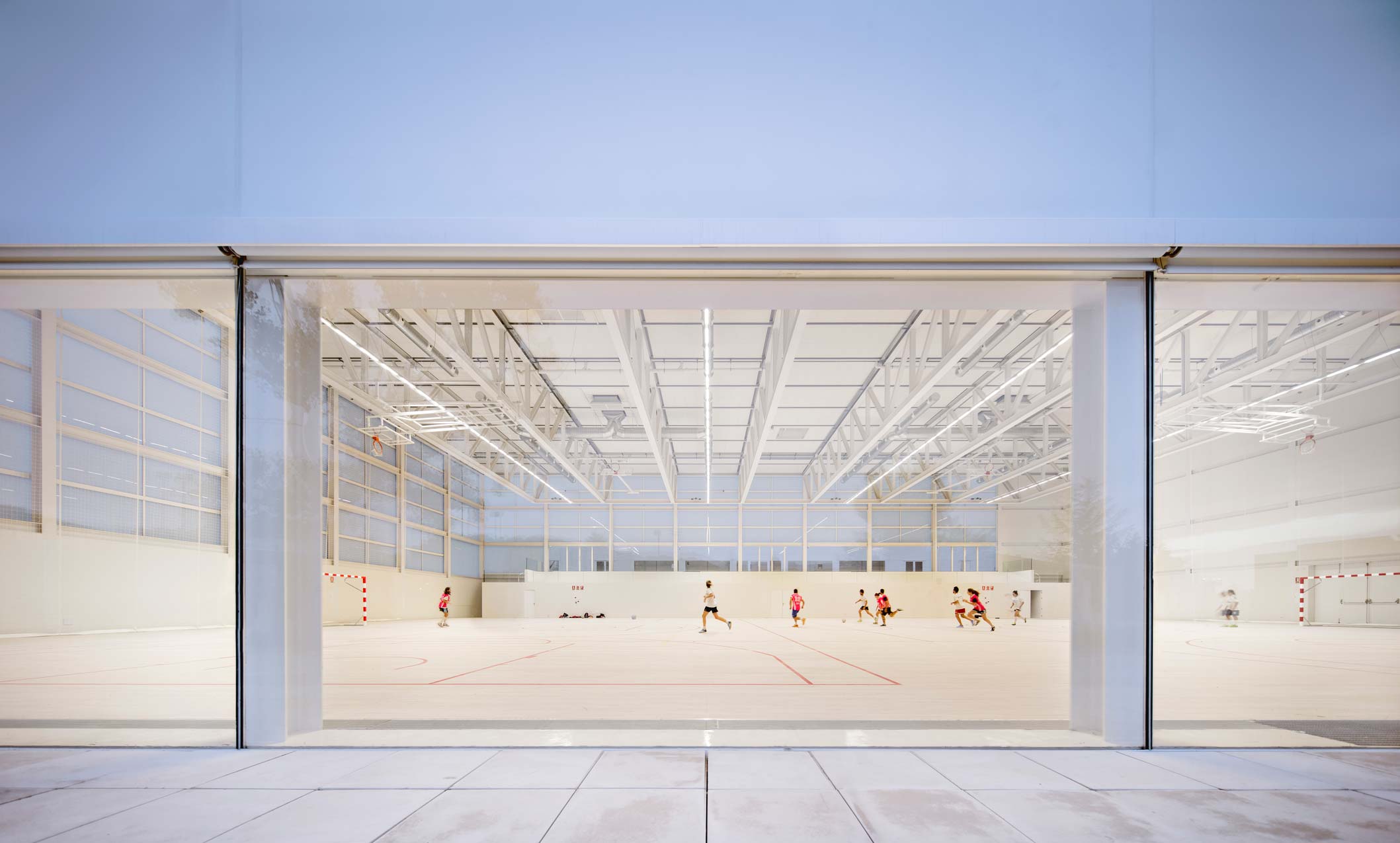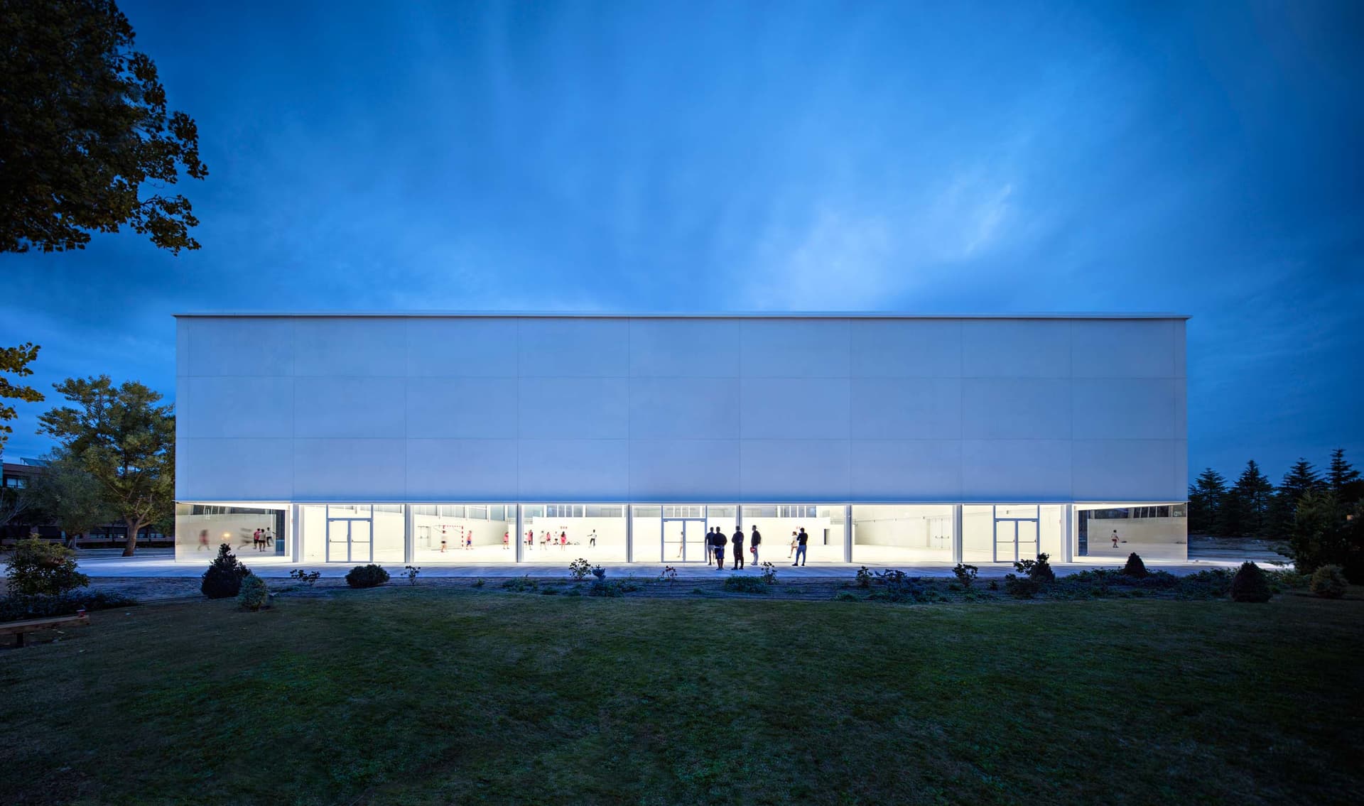 No es un problema económico, lo hemos comentado muchas veces en el foro. Hay mil ejemplos de arquitectura bastante sencilla y económica que con pocos medios hacen maravillas. Pongo este ejemplo del polideportivo de Campo Baeza para la Francisco de Vitoria en Pozuelo. Arquitectura modular, todo estructura metálica repetida sin ningún tipo de lujos, manda el espacio y la luz. No hace falta nada más. Ya lo de la composición de fachadas lo dejamos para el curso que viene…. Eso es Arquitectura con mayúsculas. Lo otro no sé muy bien cómo calificarlo.