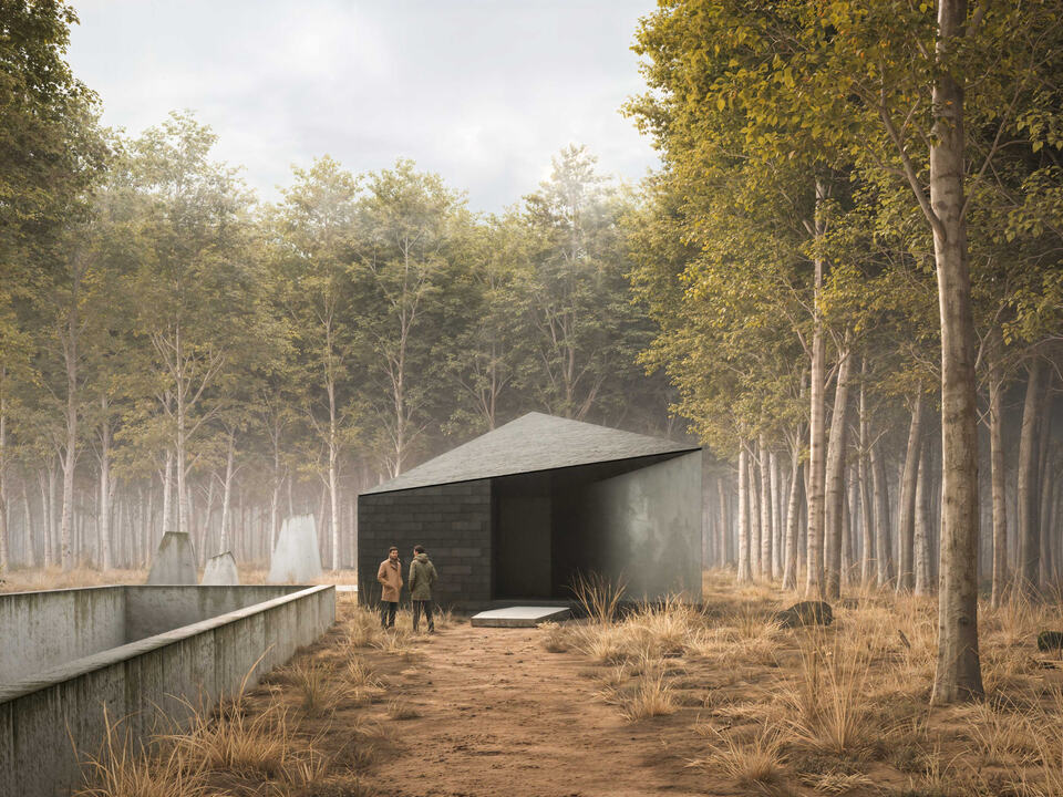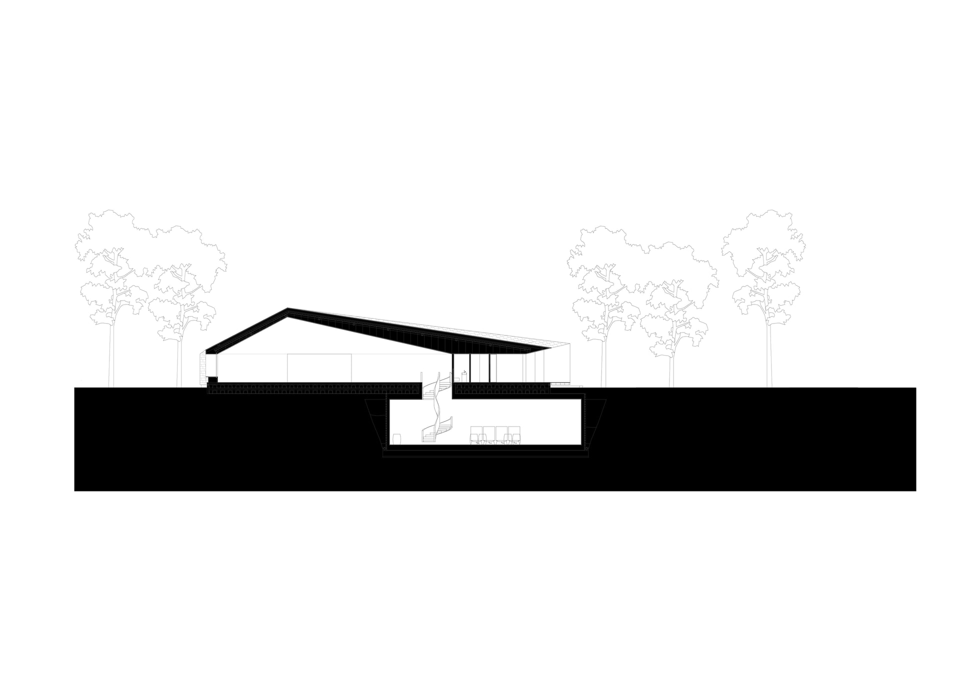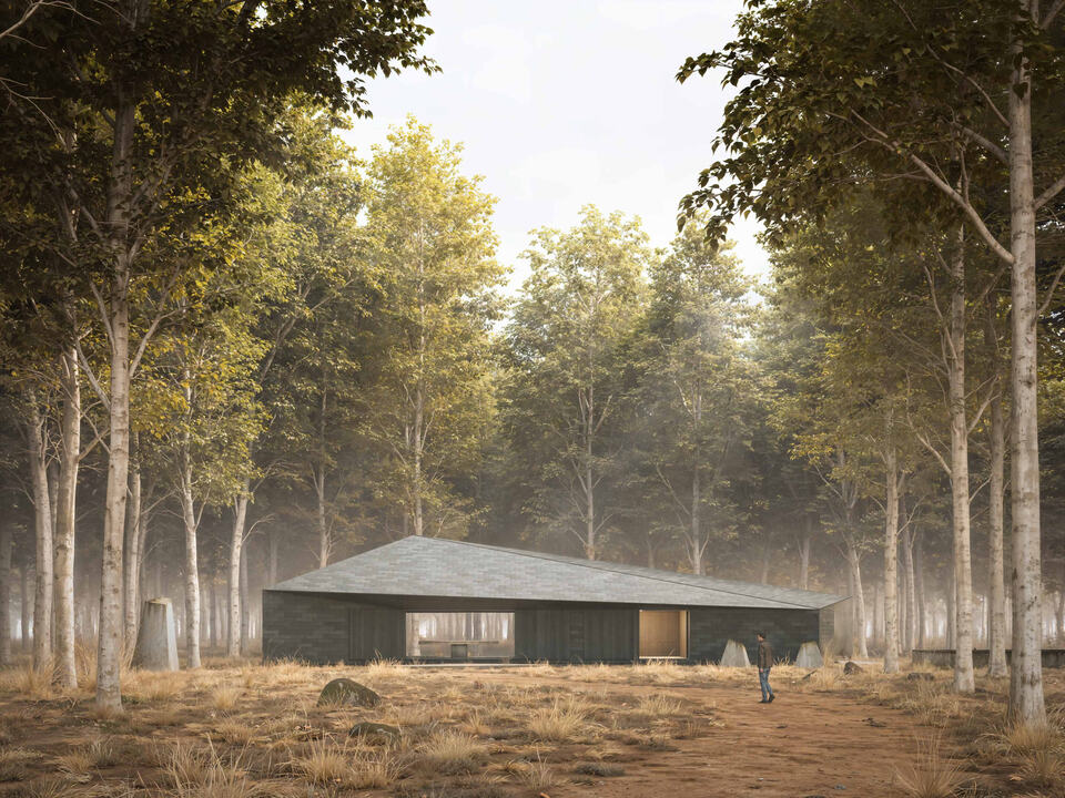 EL PABELLÓN DE CATAS SE POSA EN EL TERRENO COMO SI SE TRATARA DE UN AFLORAMIENTO ROCOSO QUE FORMARA PARTE DE LA NATURALEZA QUE LO RODEA. SU PIEL EXTERIOR RECUBIERTA DE ESCAMAS DE PIEDRA LOCAL SE RELACIONA TANTO CON EL PAISAJE NATURAL COMO CON LAS CUBIERTAS DE PIZARRA DE LOS MUNICIPIOS CERCANOS. EL INTERIOR DE ESTA PIEZA PÉTREA TALLADA SE RECUBRE MEDIANTE UNA PIEL CONTINUA DE TABLONES DE MADERA QUEMADA, RECORDANDO A UN REFUGIO EN MEDIO DEL BOSQUE QUE INCORPORA GRANDES VENTANALES CON PERFIL OCULTO QUE SE ABREN AL PAISAJE Y CONTRIBUYEN A GENERAR UNA EXPERIENCIA INMERSIVA DEL USUARIO EN LA NATURALEZA.